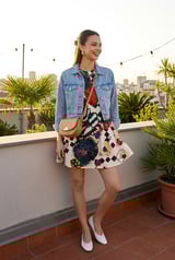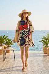 Multi Printed Shift Mini Dress with Bell Sleeves