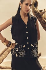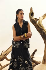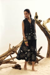 Black Linen Top and Midi Skirt Co-ord Set