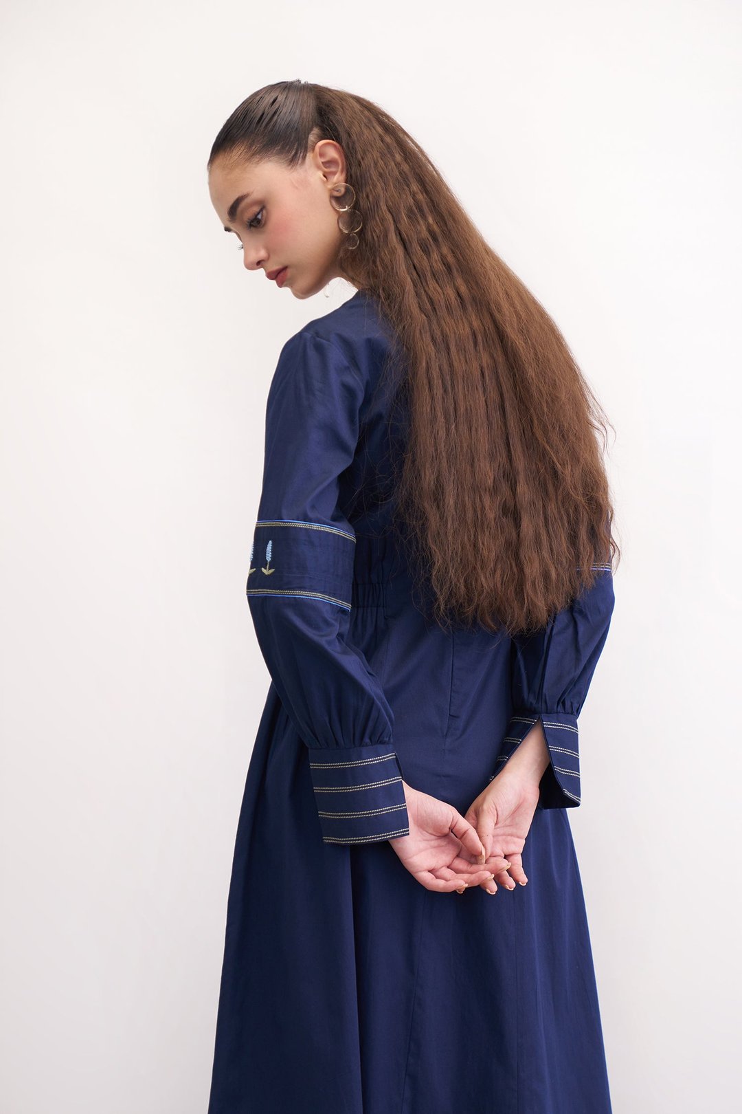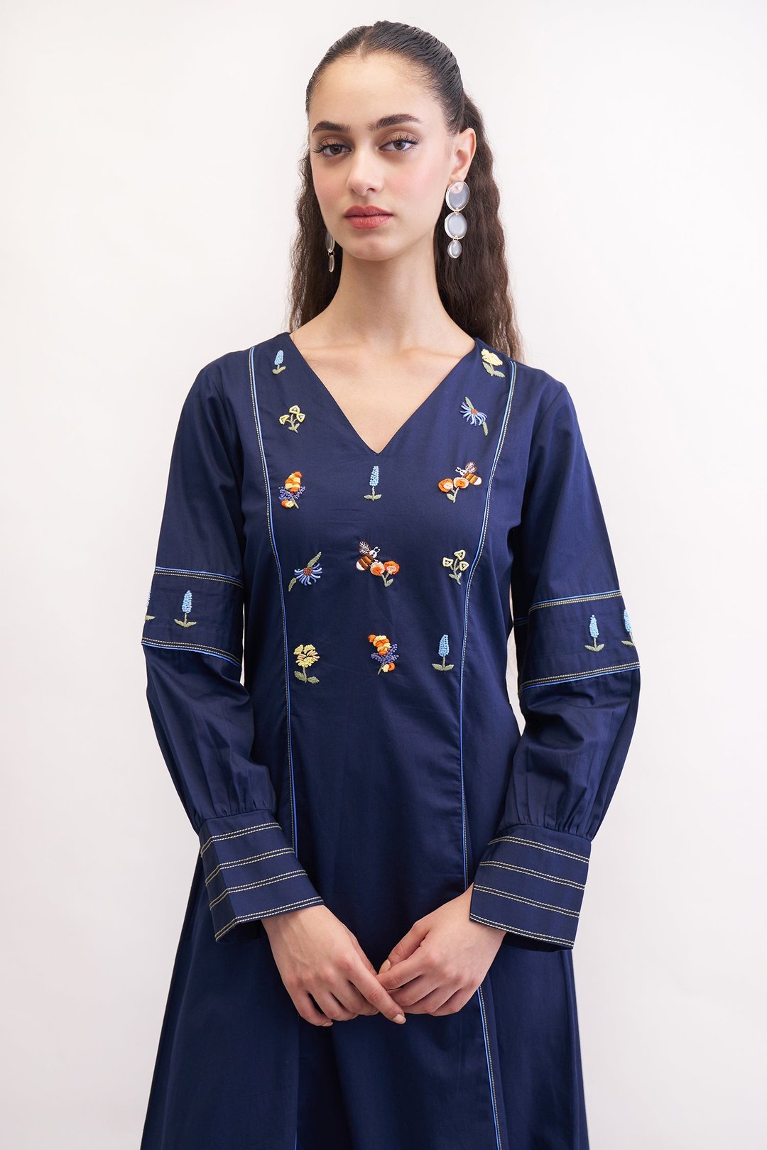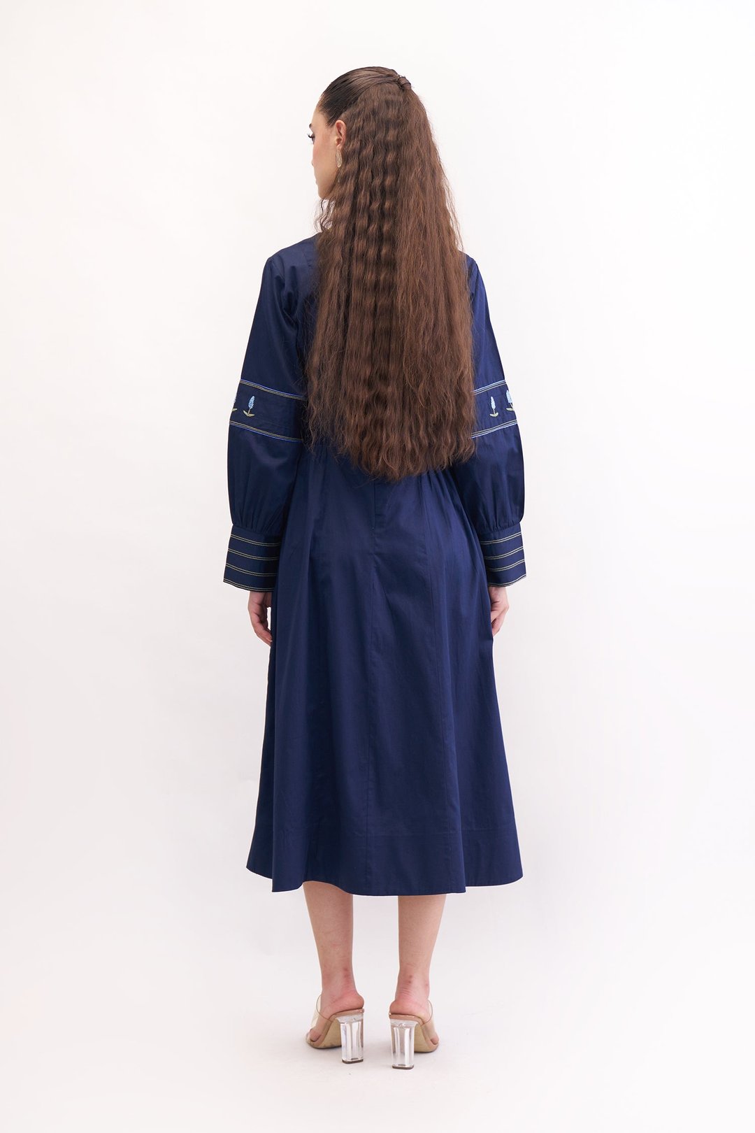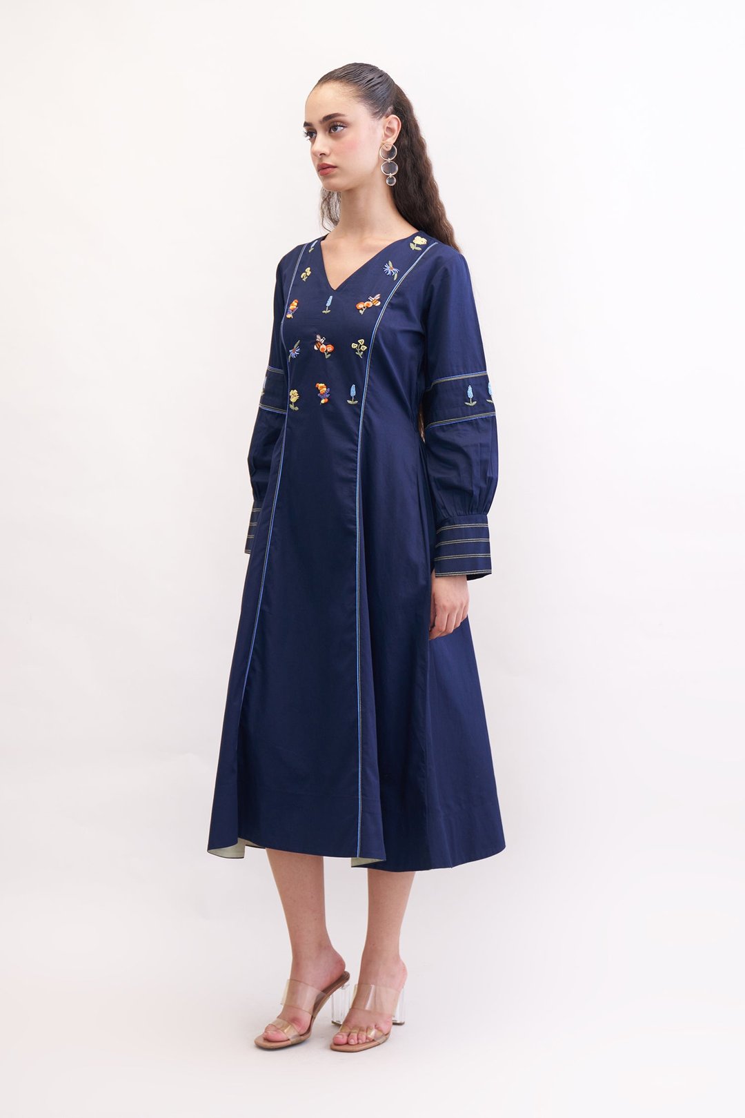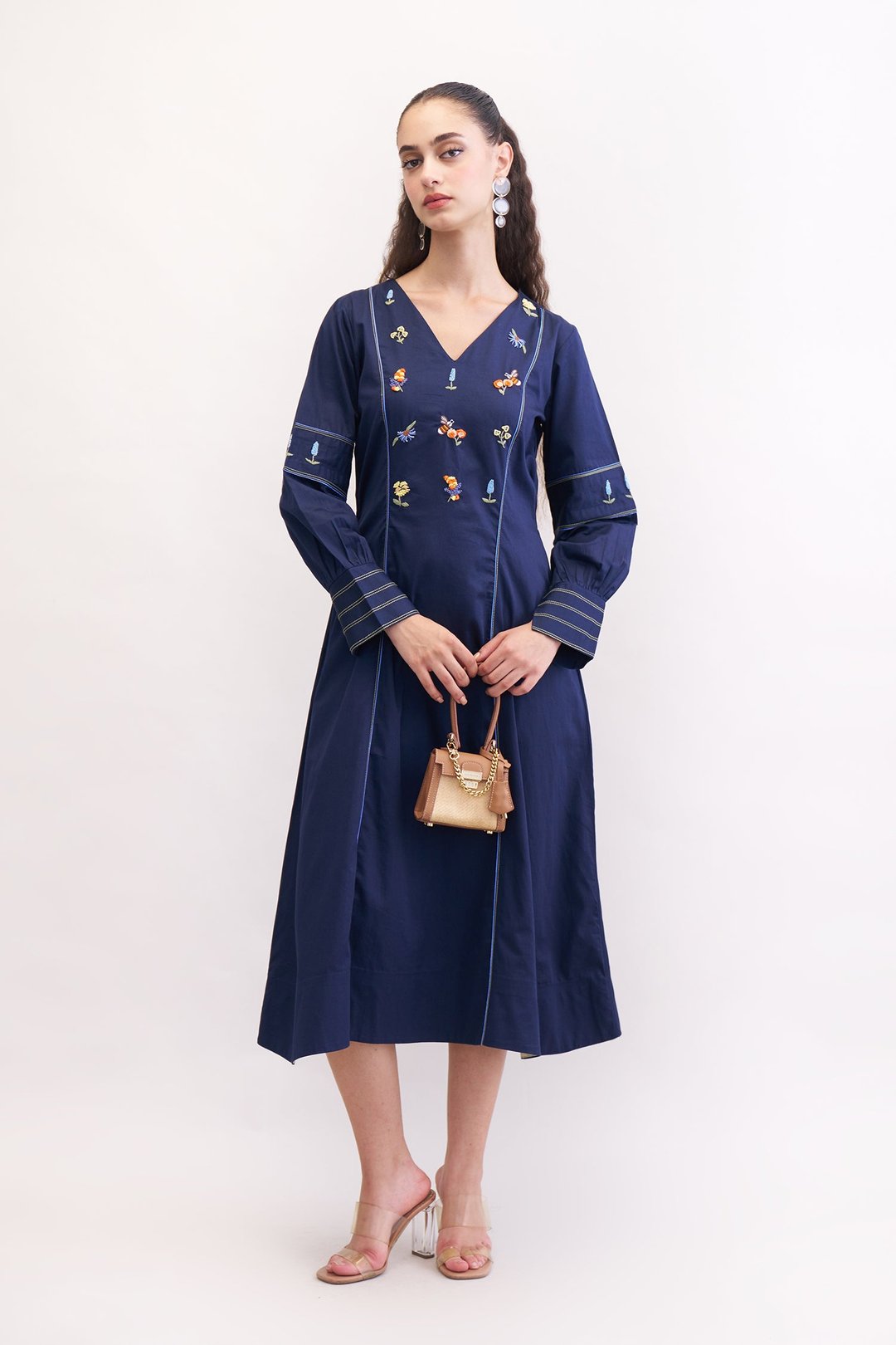 Feral Navy Embroidered Midi Dress