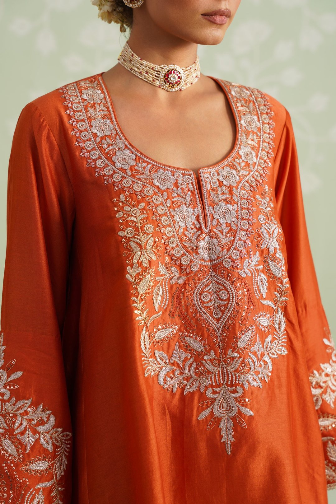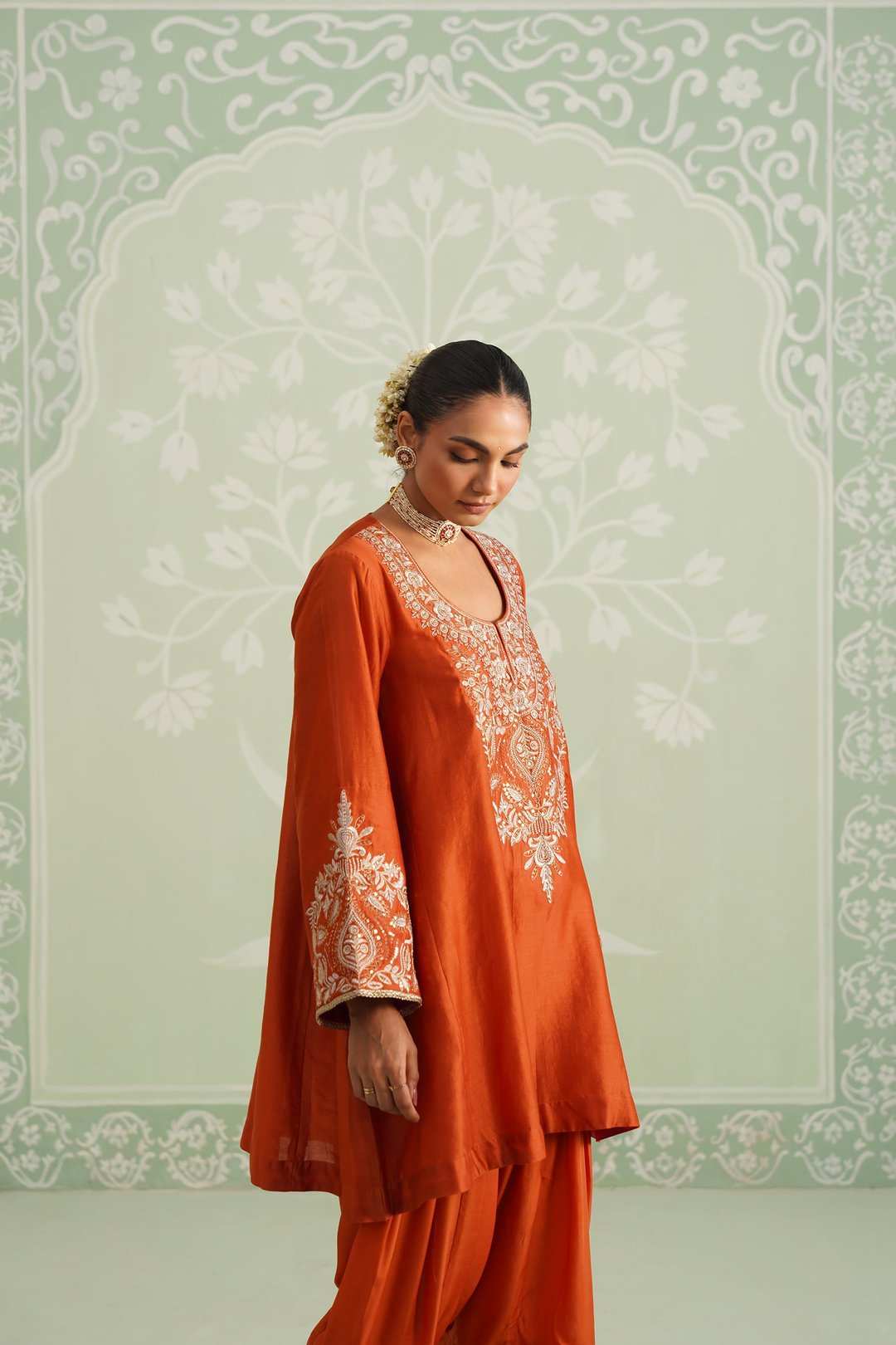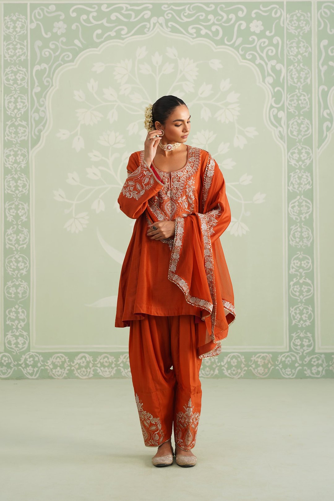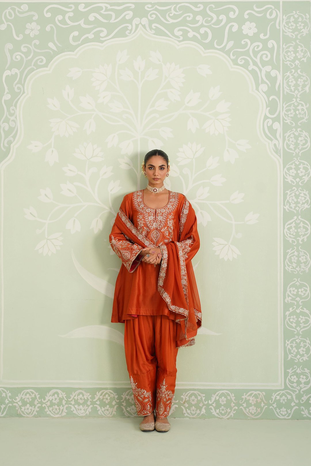 Makshi Chanderi Satin Embroidered Matching Set