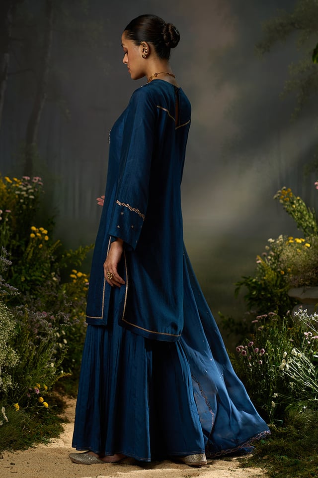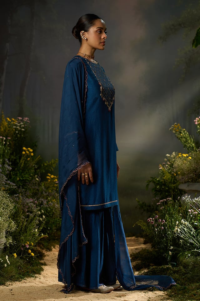 Moonlit Ocean Raw Silk Festive Kurta Set