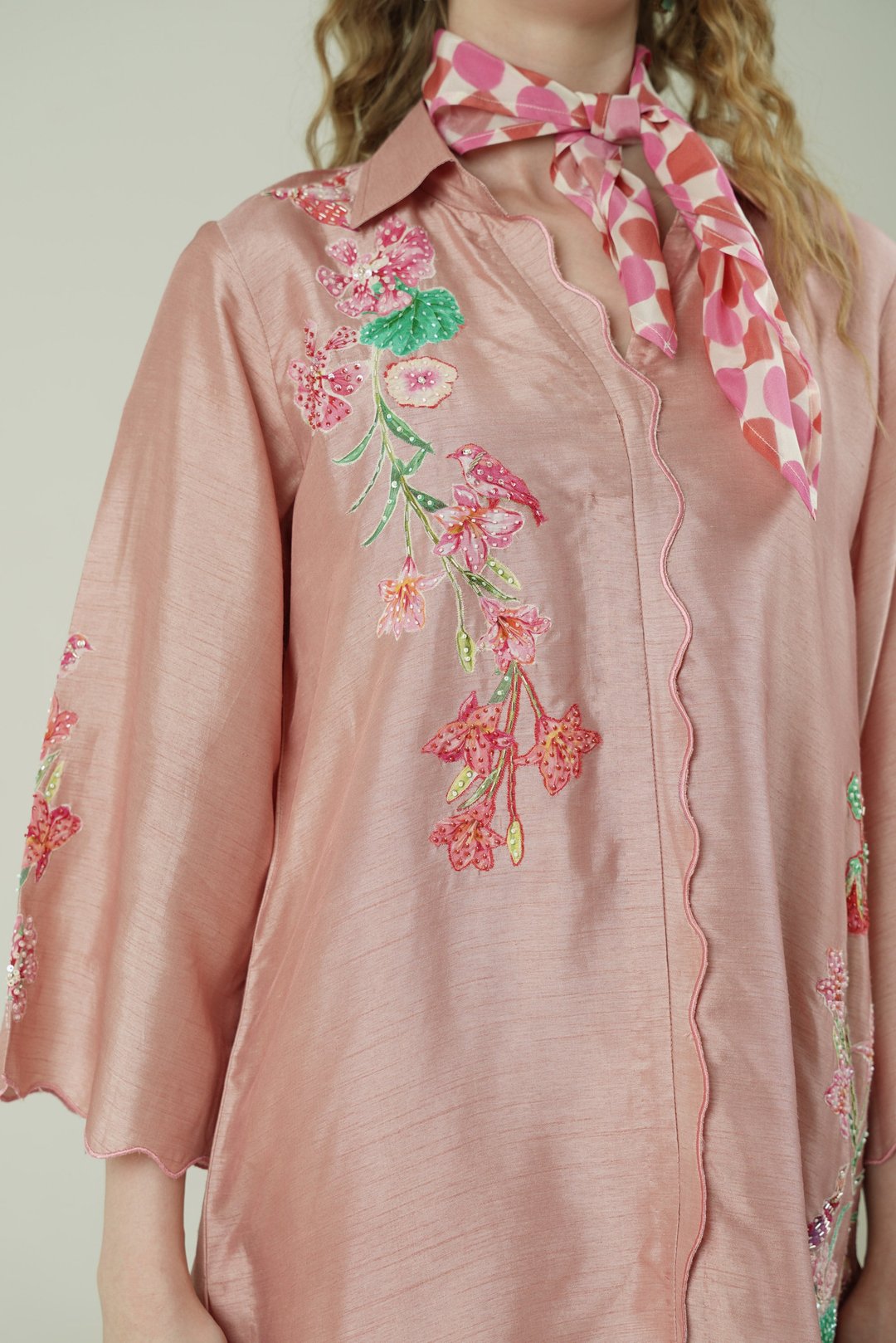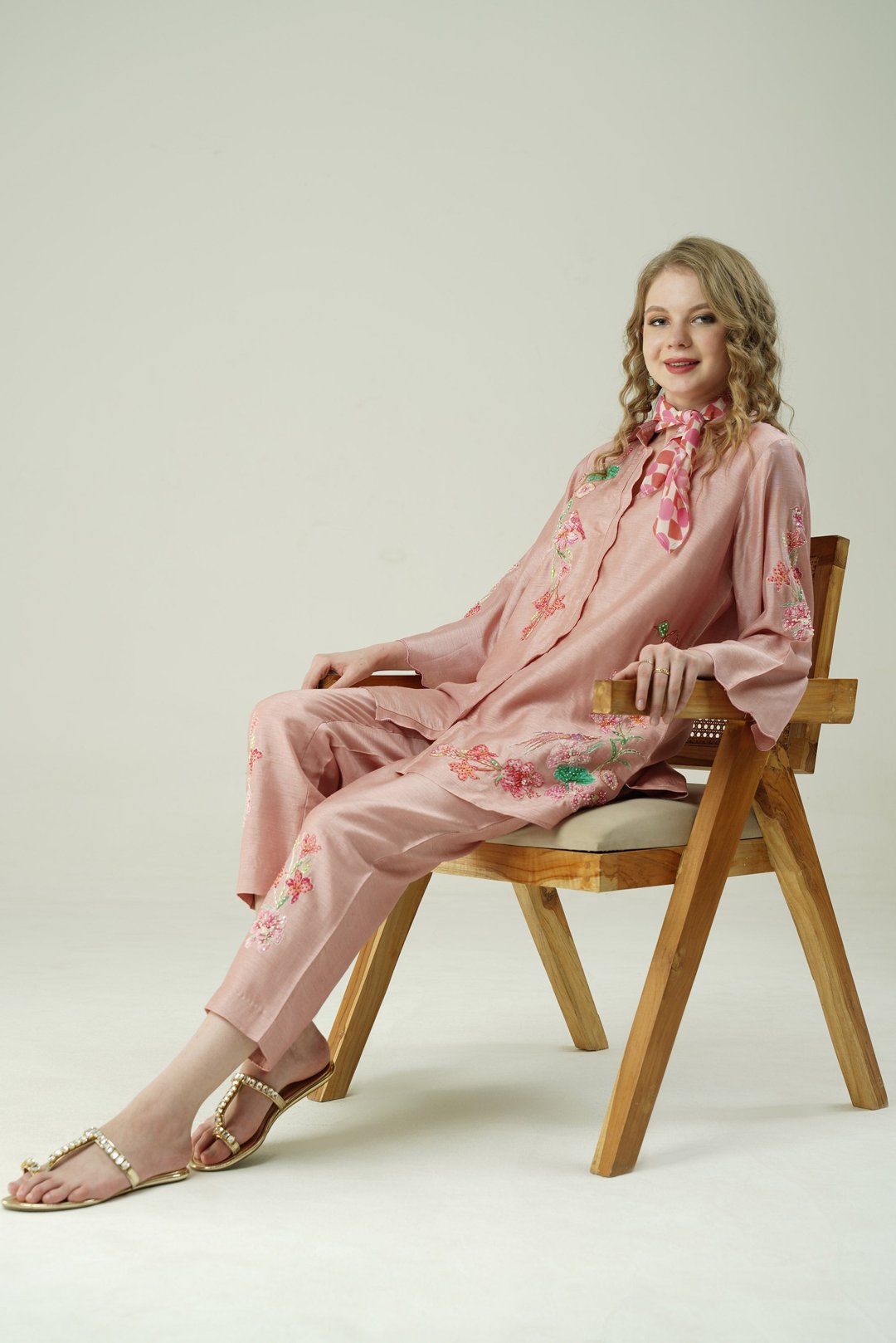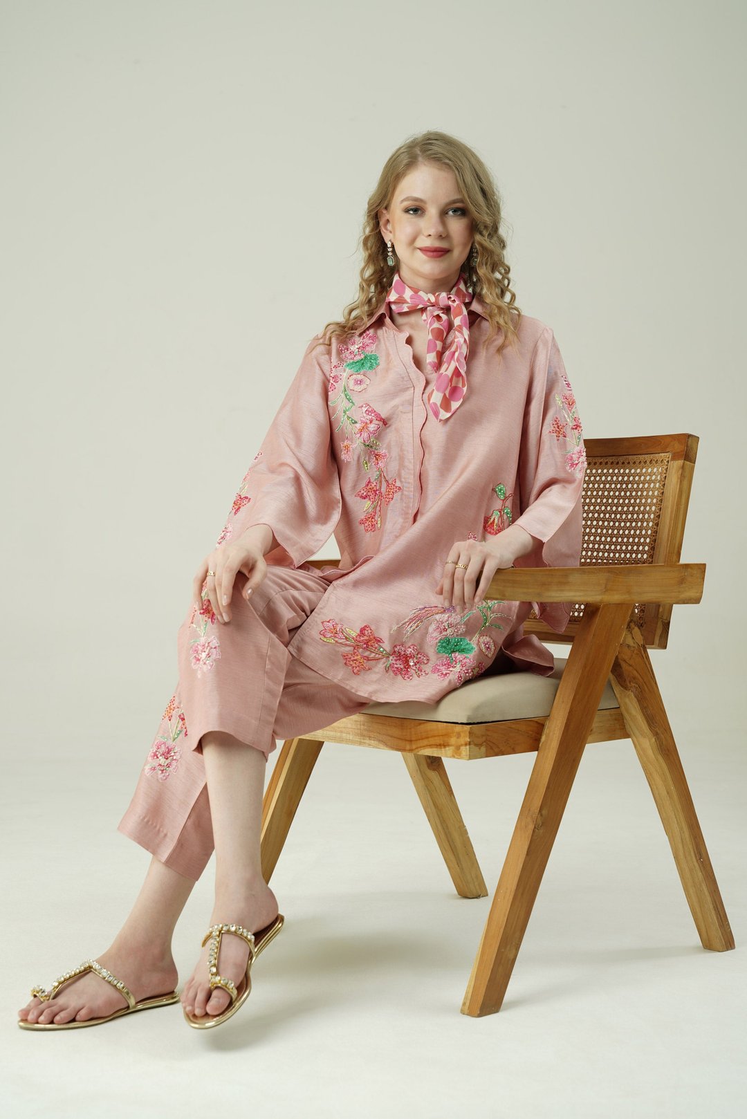 Onion Pink Applique Bamber Silk Co-Ord Set