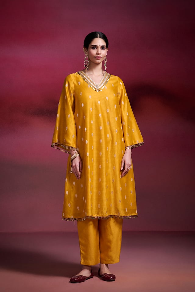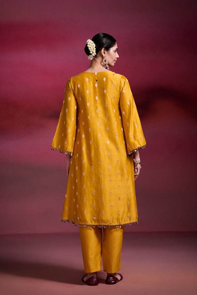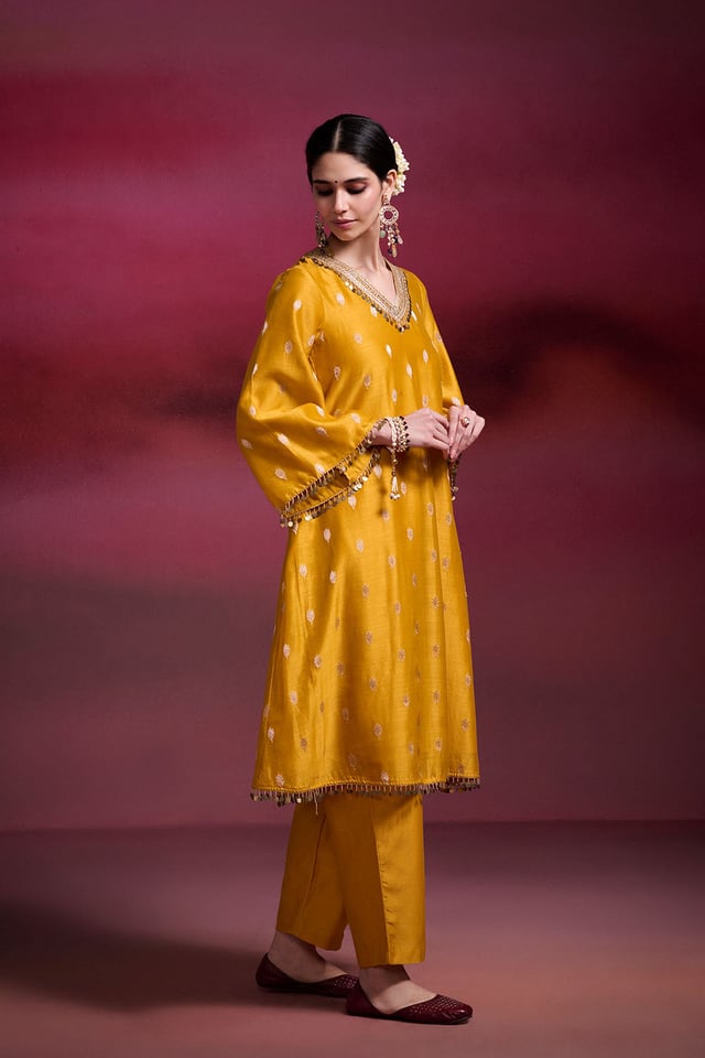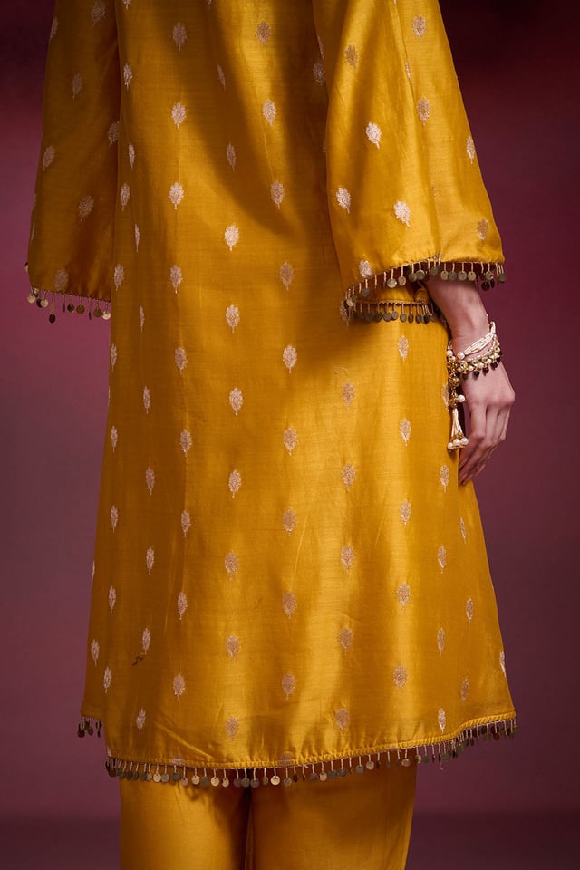 Basanti Mustard Brocade Chanderi Kurta Set