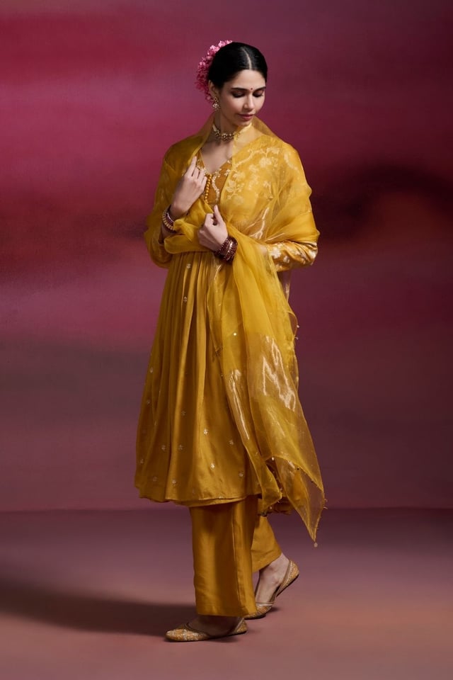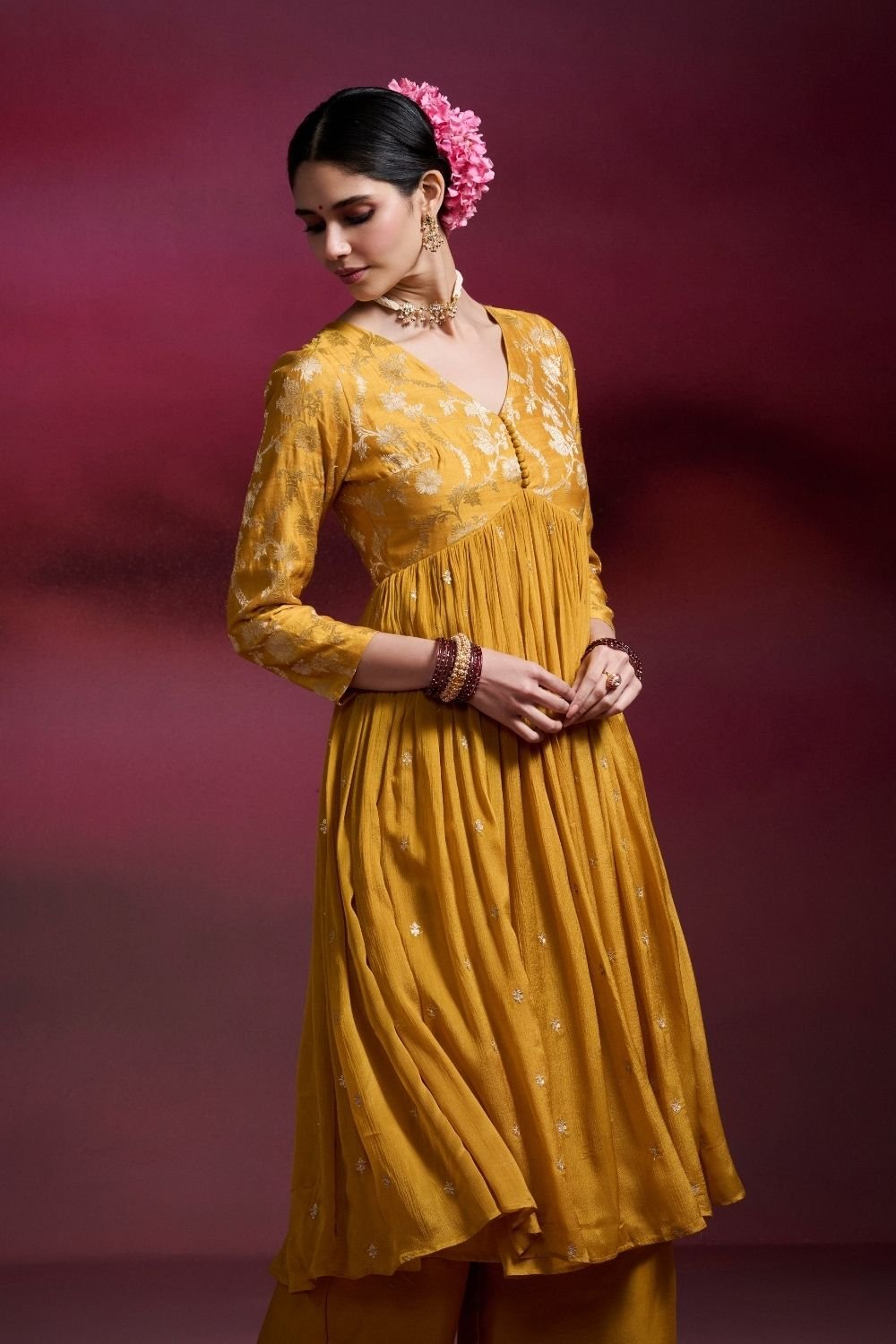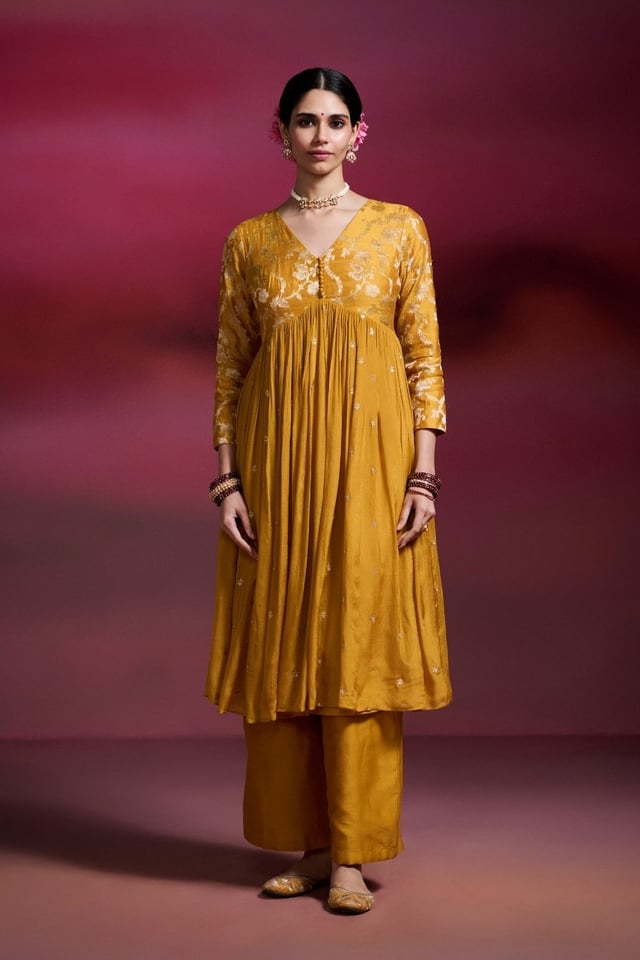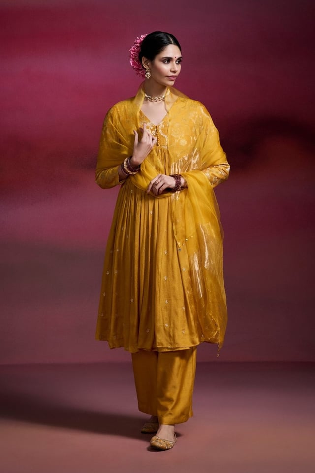 Umrao Mustard Silk Brocade Anarkali Kurta Set