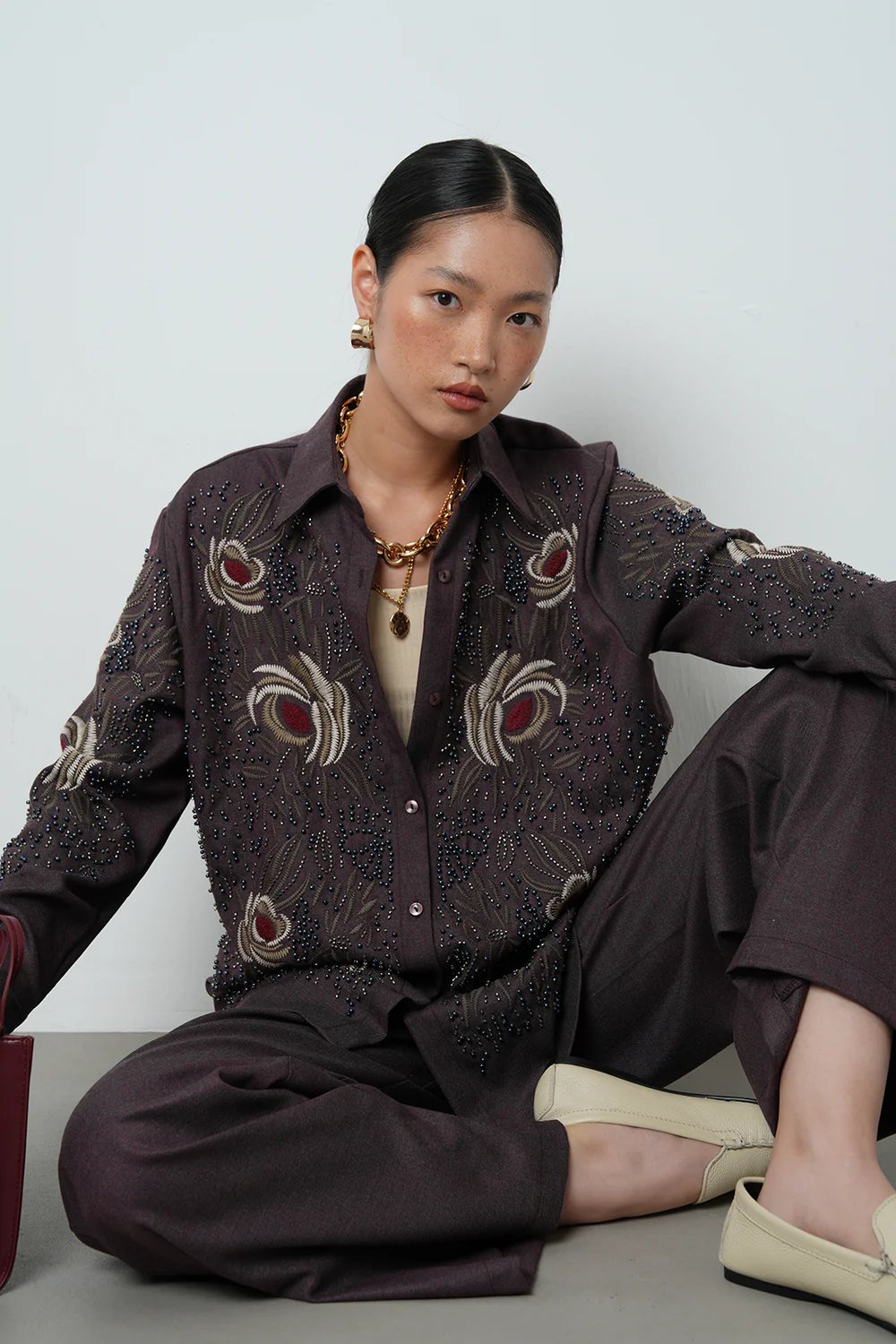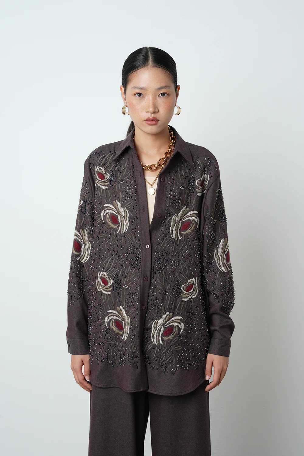 Brown Embroidered Floral Shirt