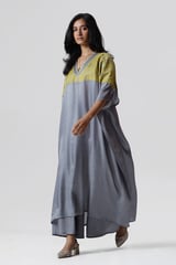 Dove Grey and Olive Printed Kaftan Co-ord Set