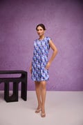 Blue Aquarelle Print Gajji Silk Jacket Dress