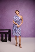 Blue Aquarelle Print Silk Organza One Shoulder Dress