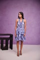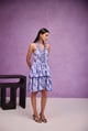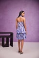Blue Aquarelle Print Silk Organza Tiered Ruffle Halter Mini