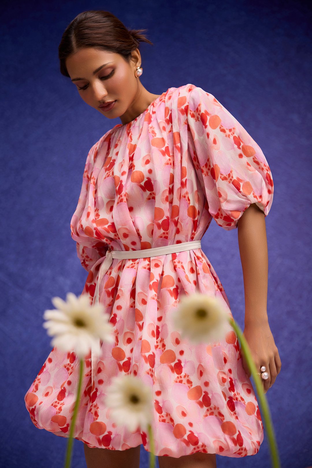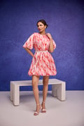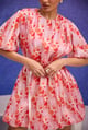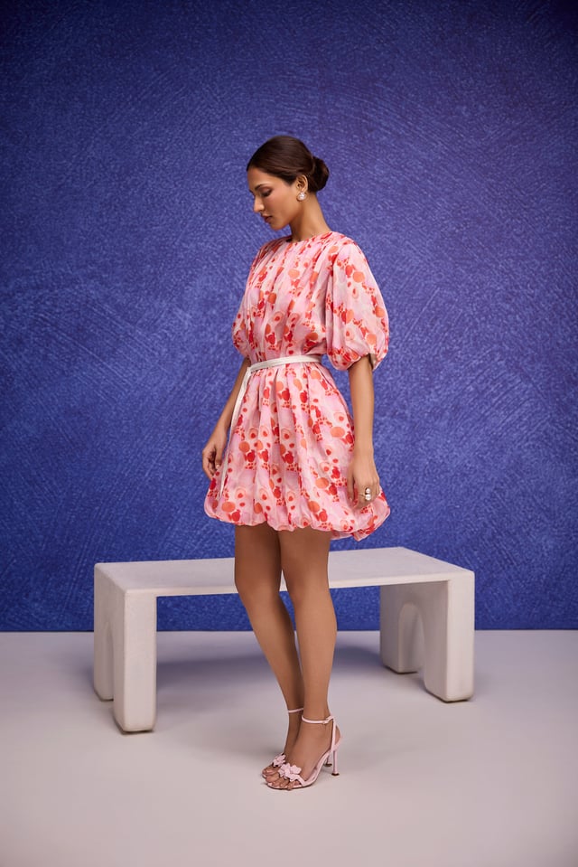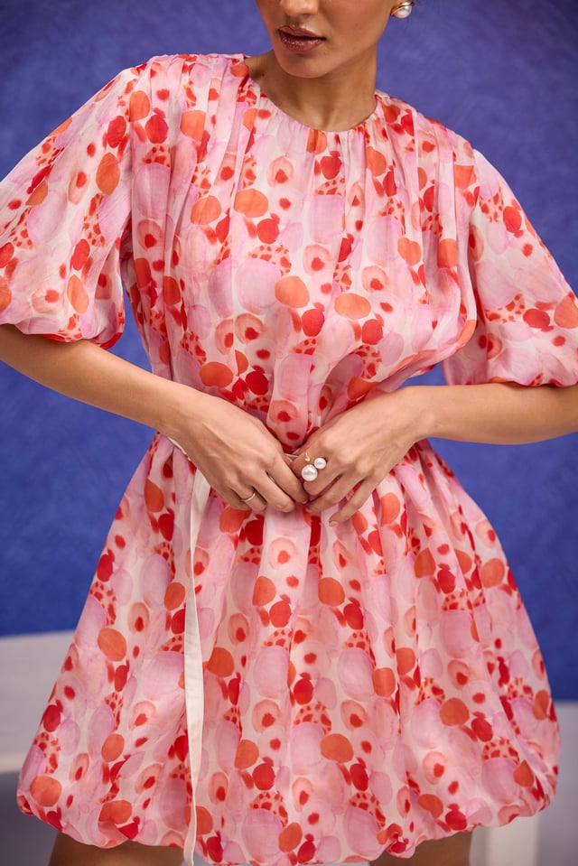Red Aquarelle Print Silk Organza Bubble Dress