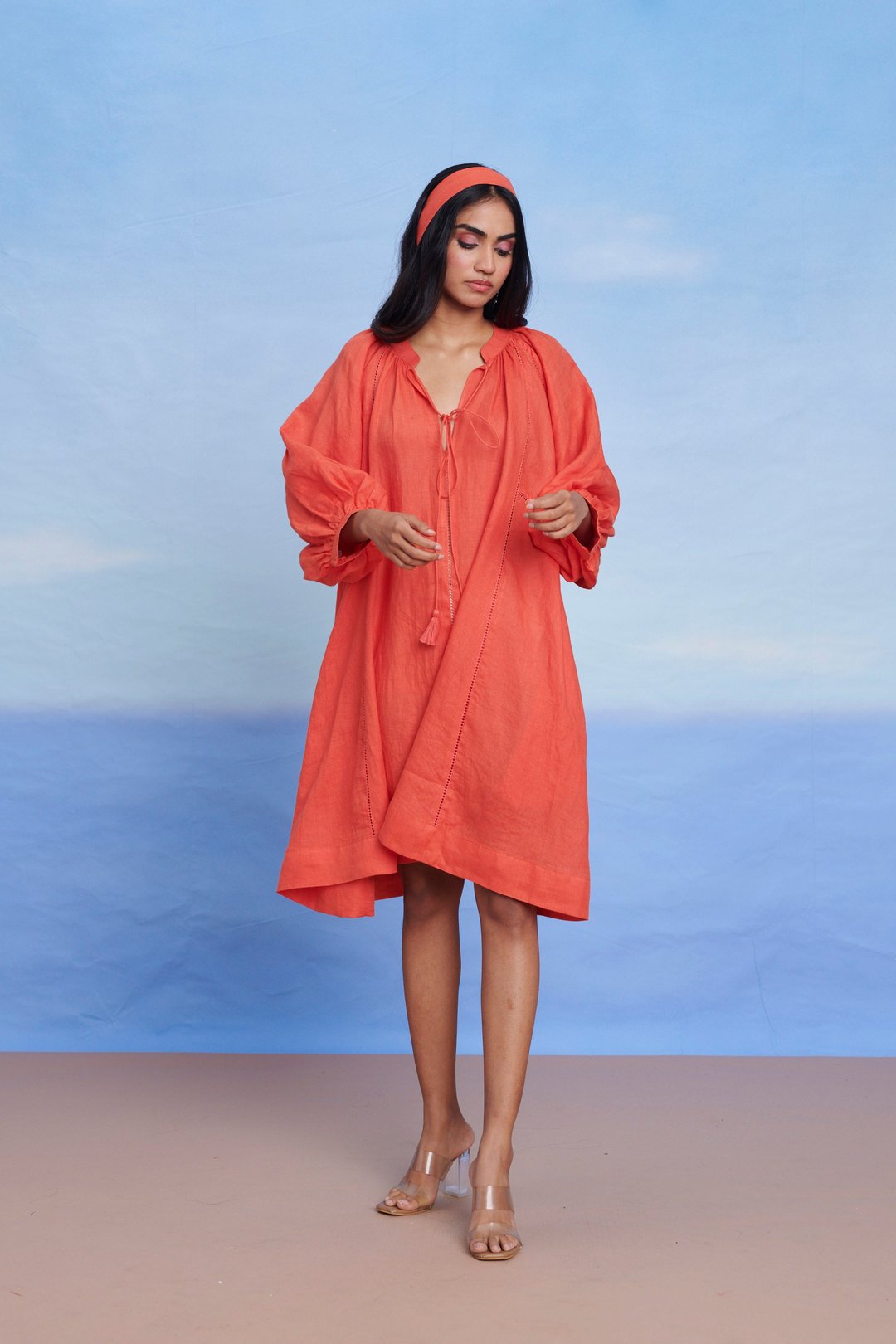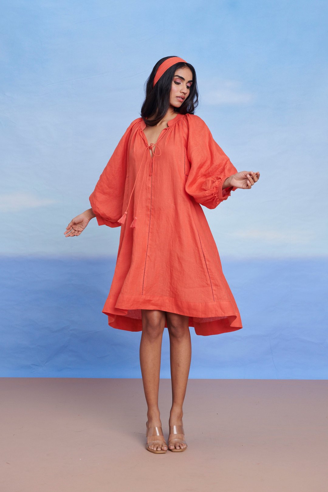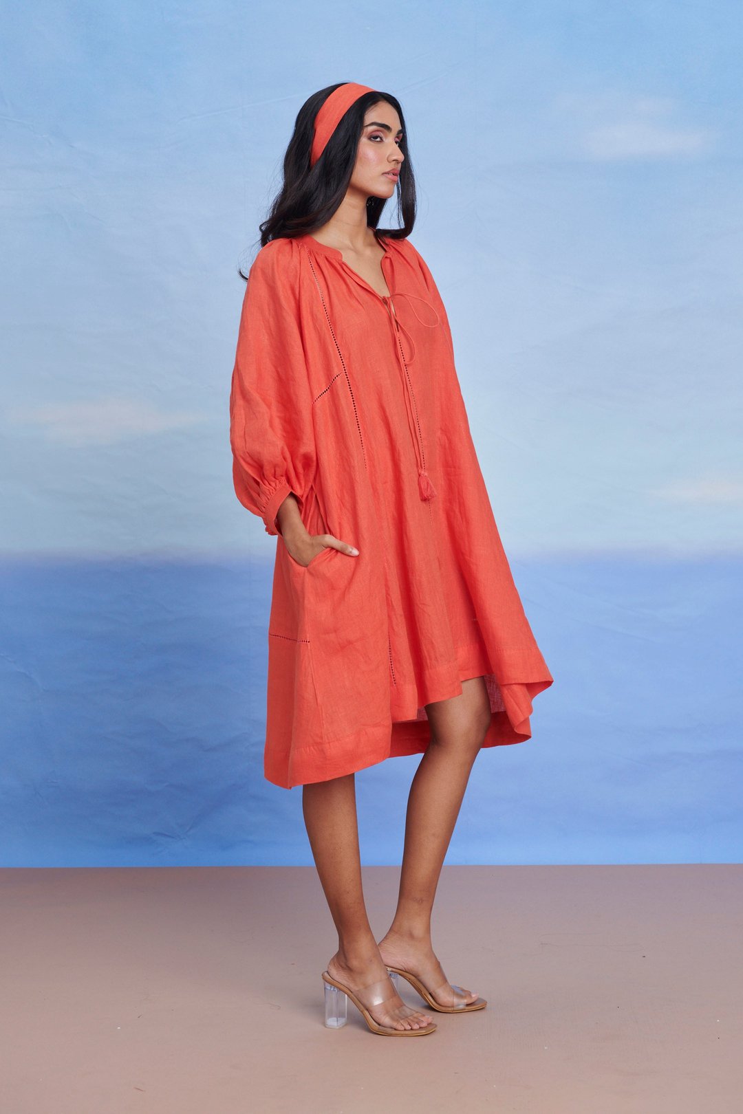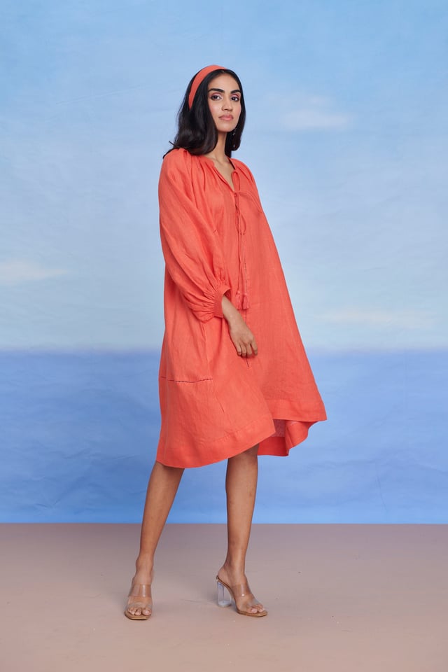 Tangerine Linen Lace Panelled Dress