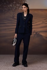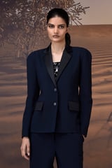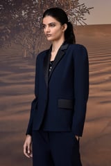 Tailored Navy Blazer in Poly Viscose & Satin