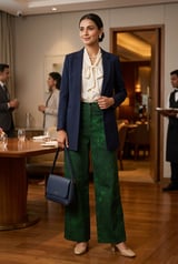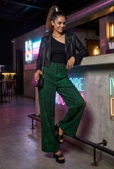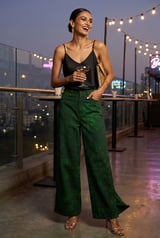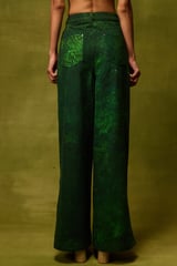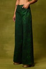Emerald Green Printed Wide-Leg Denim Trousers