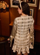 Beige Tweed Plaid Mini Dress with Flounced Hem
