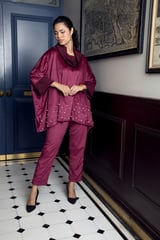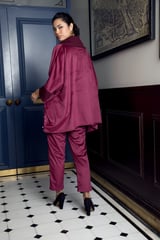 Burgundy Velvet Cowl Neck Co-ord Set with Pearl Detail