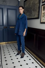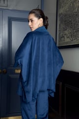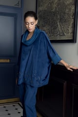 English Blue Velvet Cowl Neck Co-ord Set