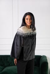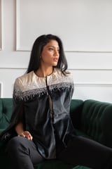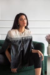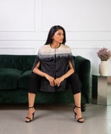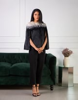 Black and Ivory Embellished Velvet Cape