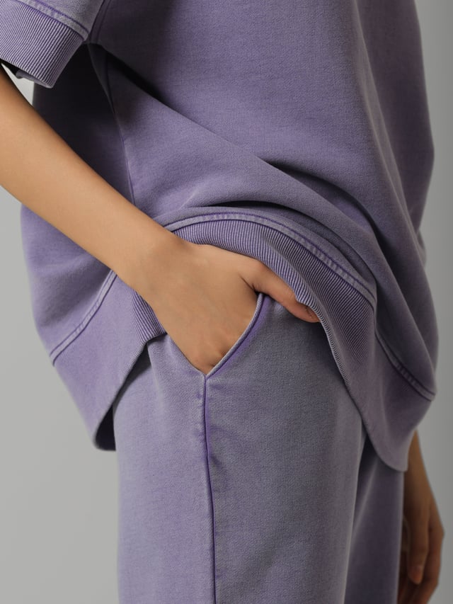Lilac Cotton Terry Acid Wash Side Slit Pant