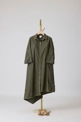 Military Green Cotton Poplin Asymmetric Midi Shirt Dress