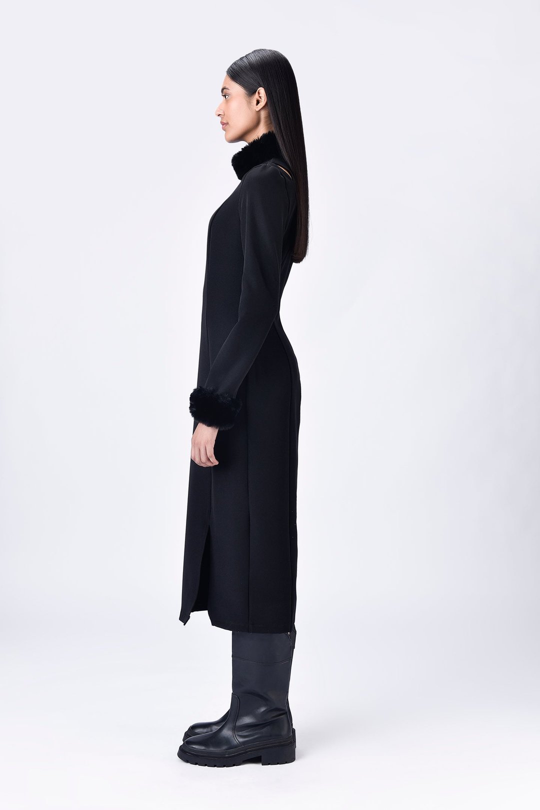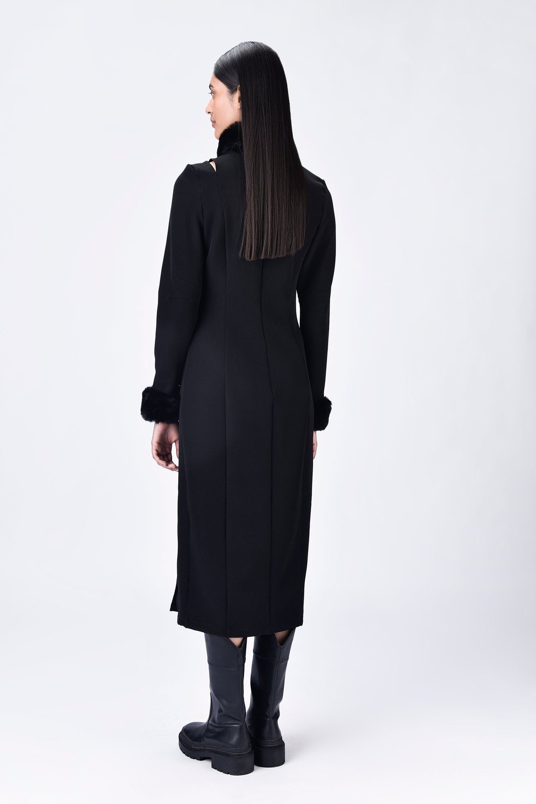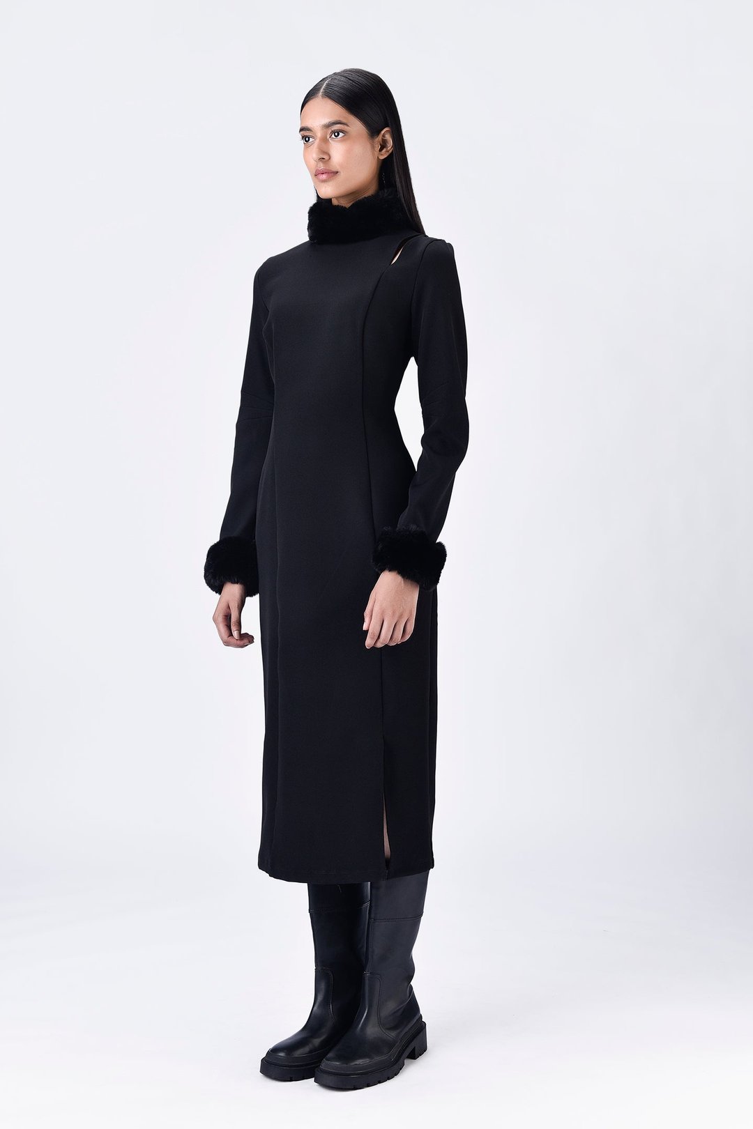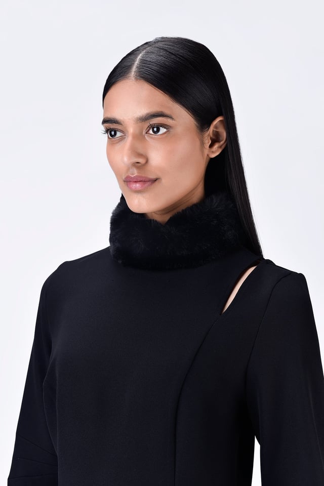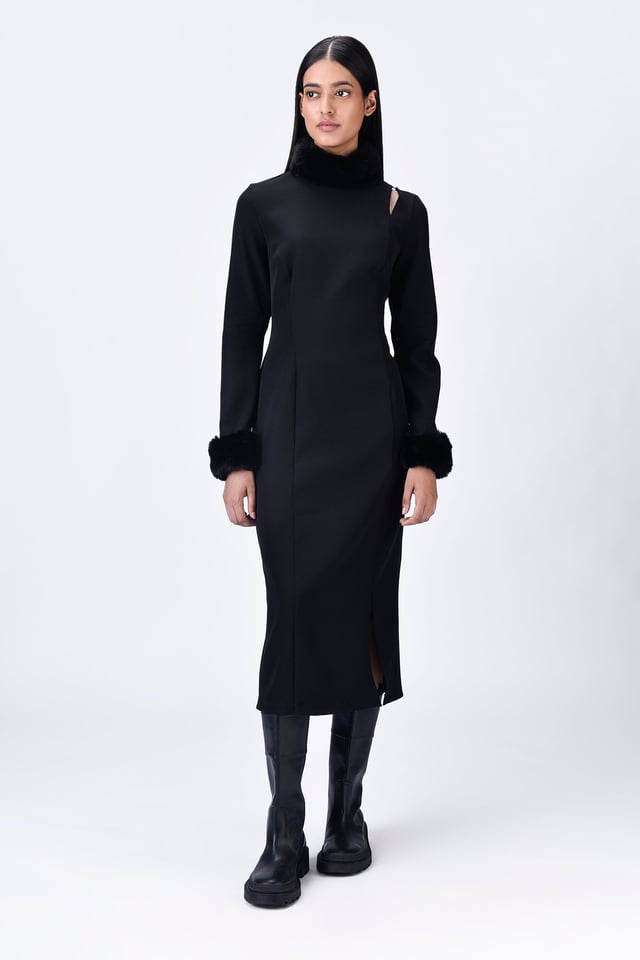 Faux Fur Collar Slim Fit Dress