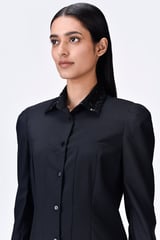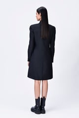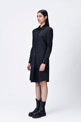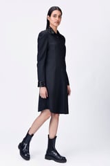 Poly Wool Shirt Dress with Embroidered Tulle