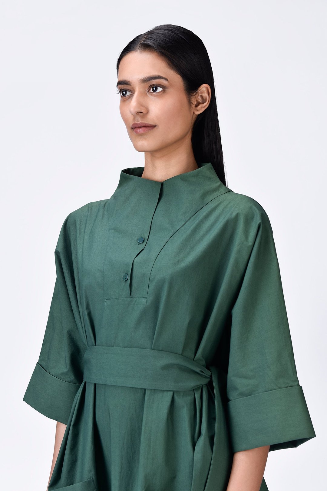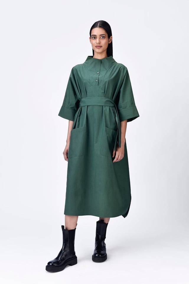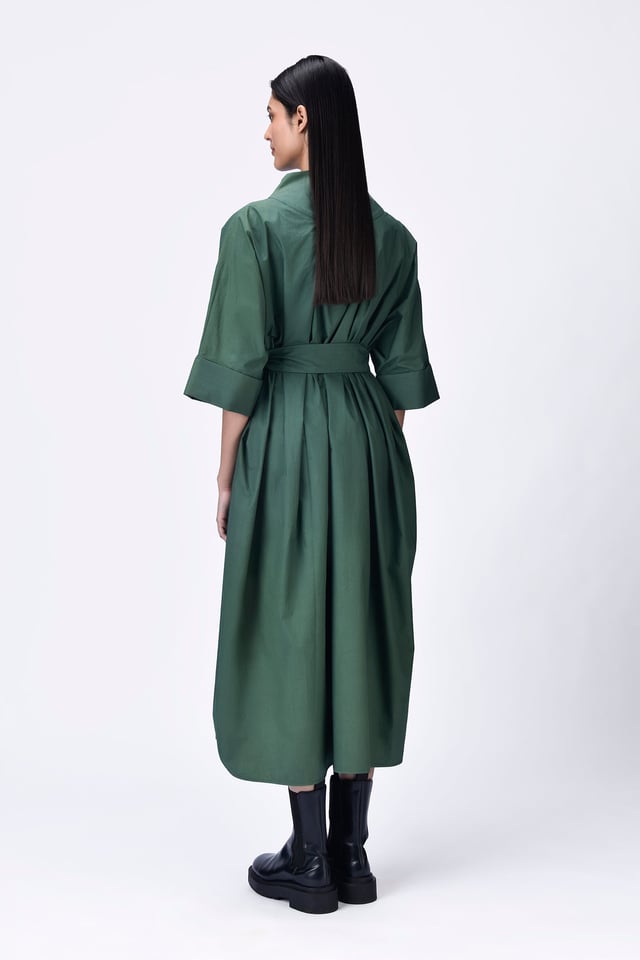 Oversized Cotton Shirt Dress with Tapered Yoke