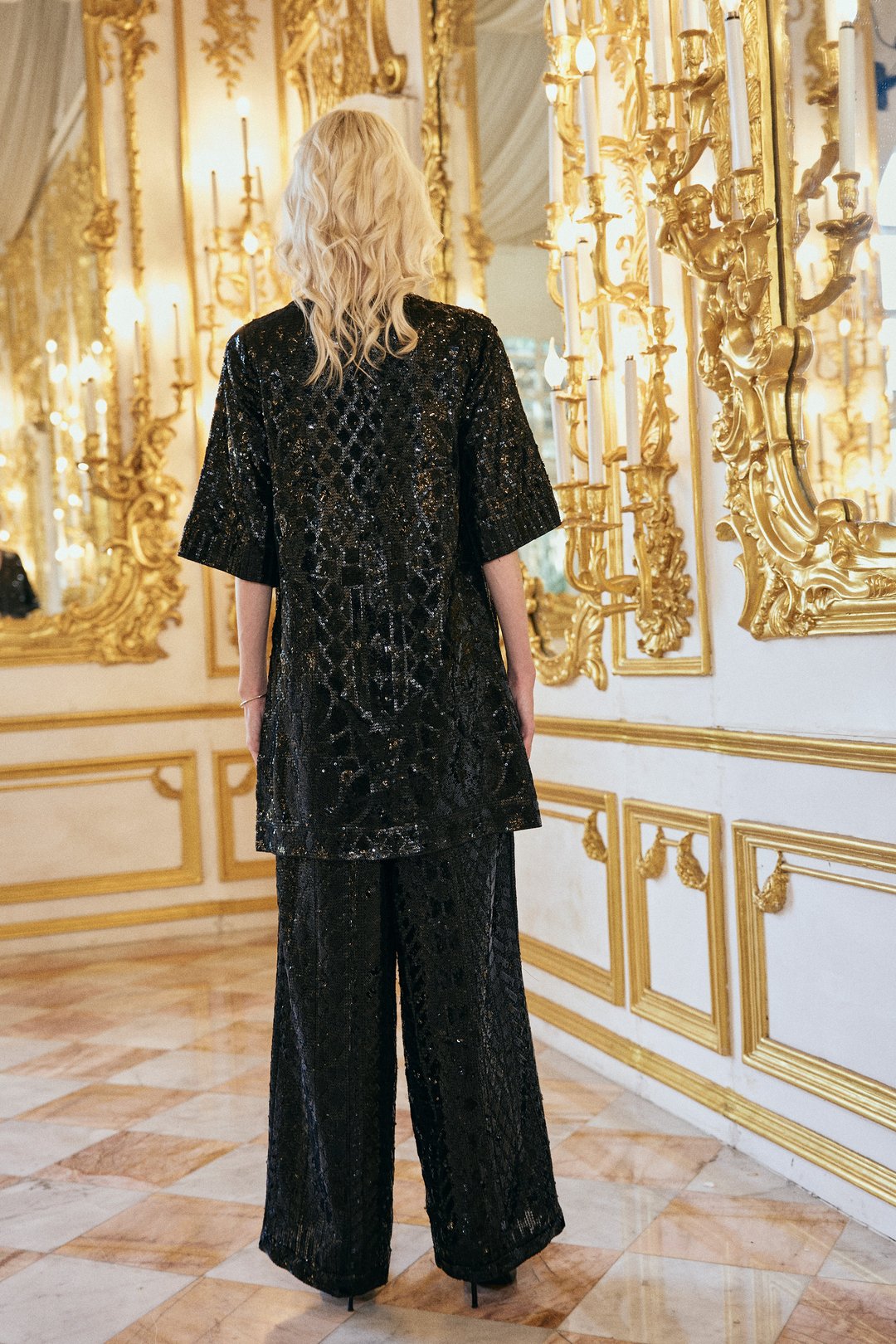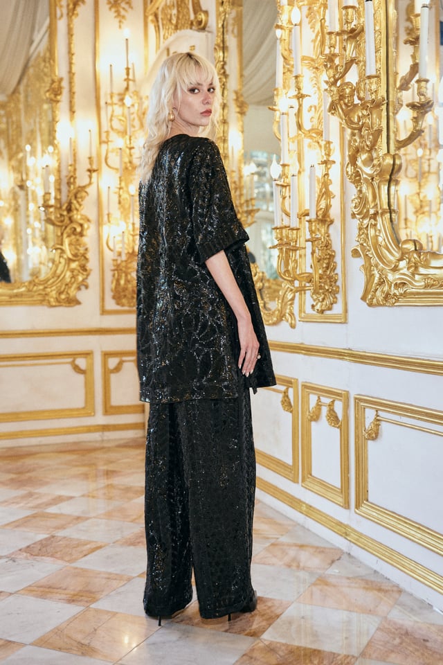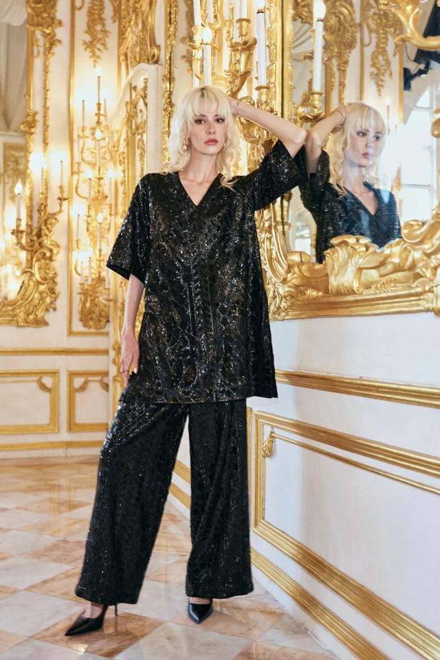 Black Sequin Embroidered Pant