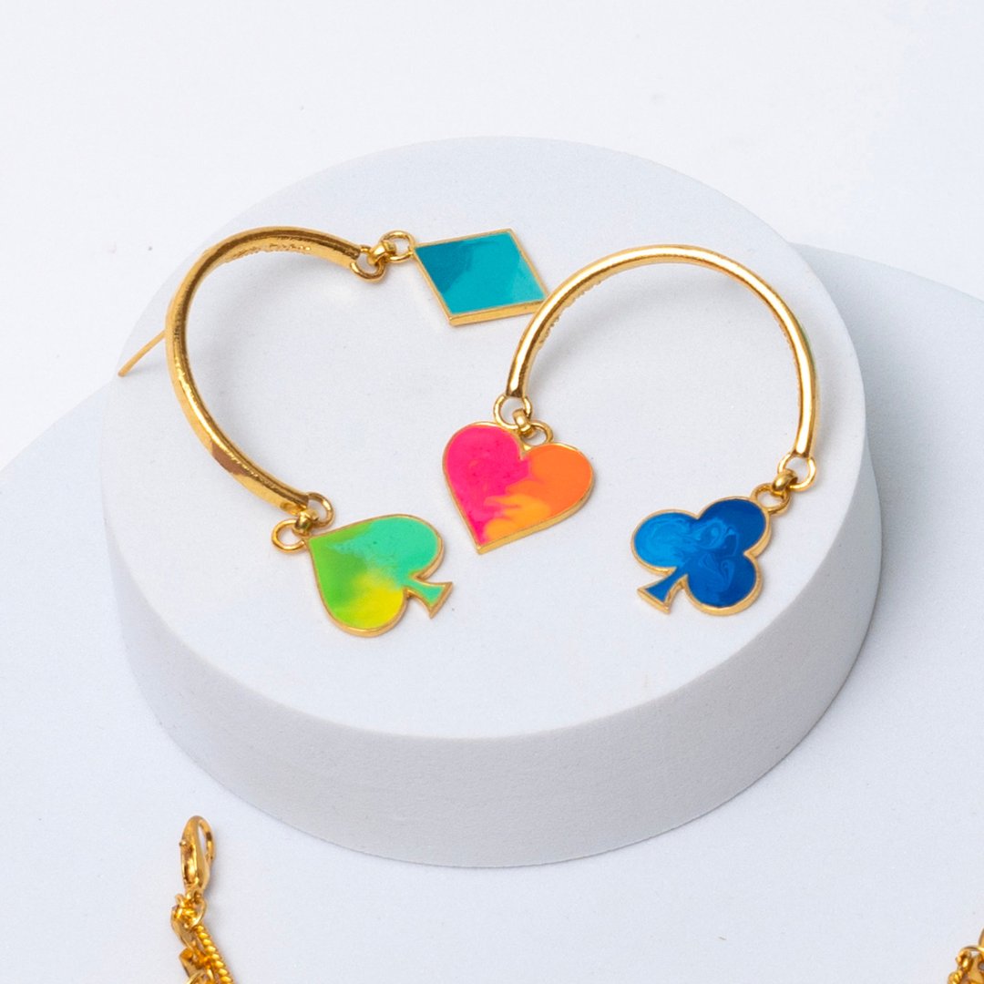 Game of Cards Earrings Semi Circle