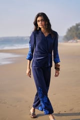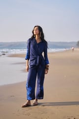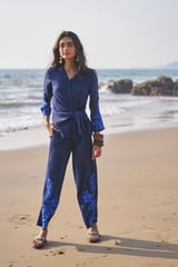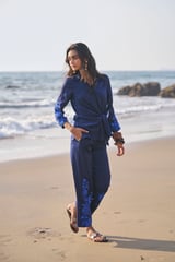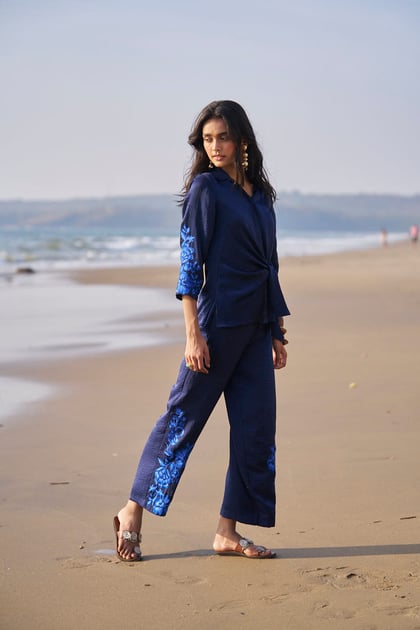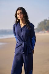 Side Tie Embroidered Cuff Shirt