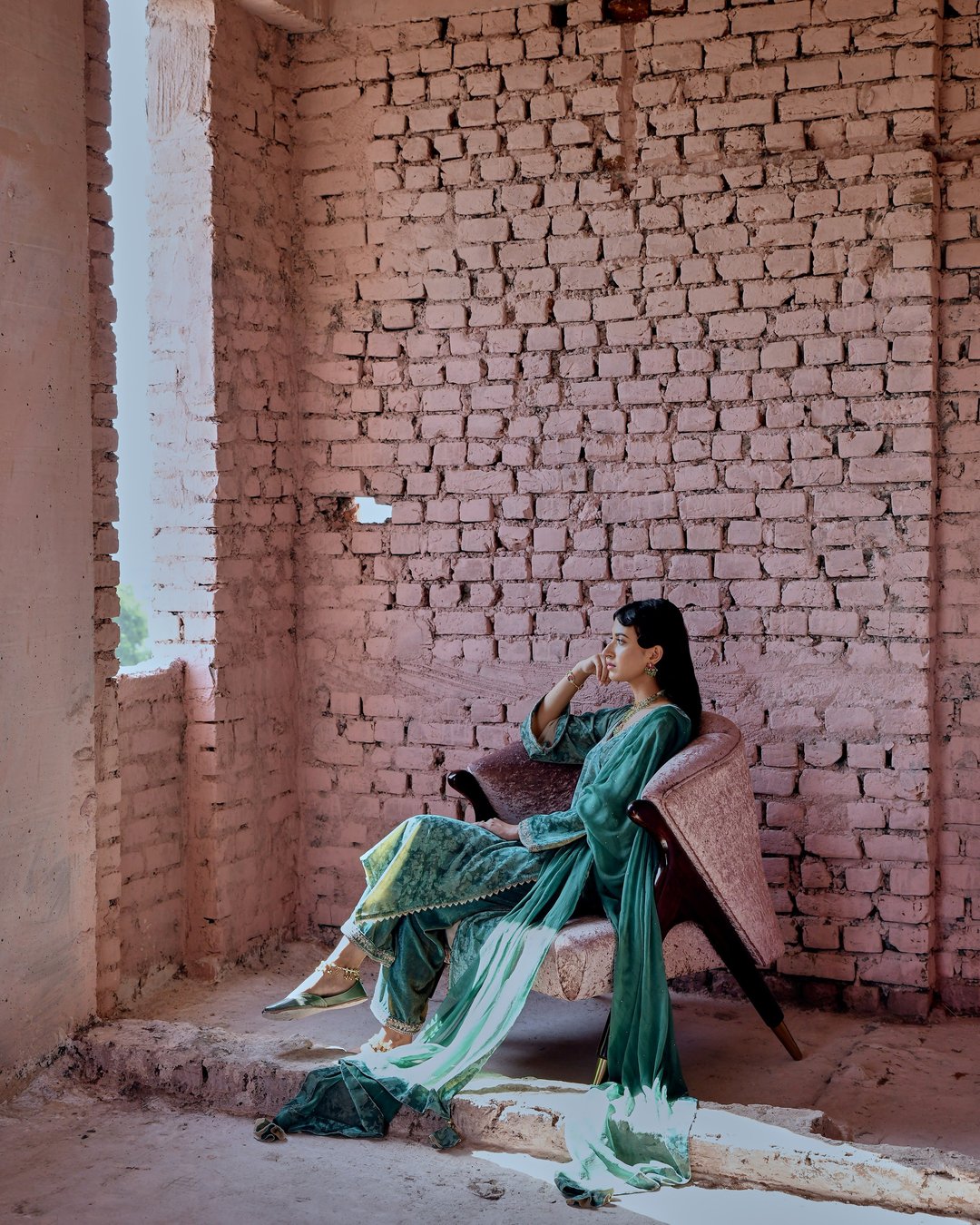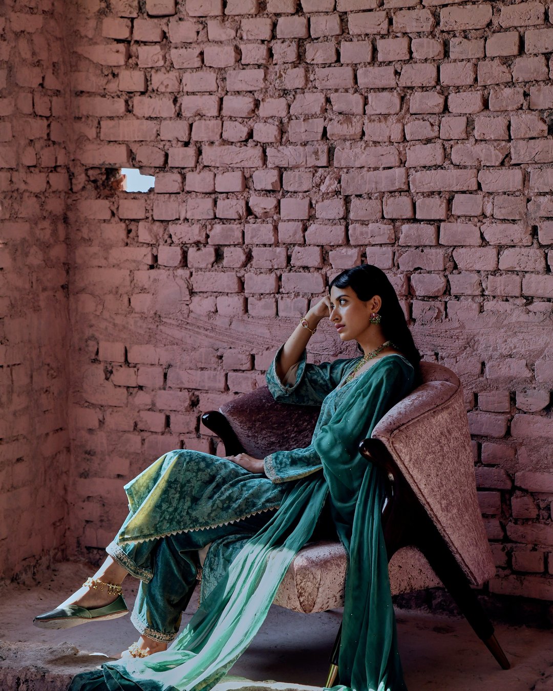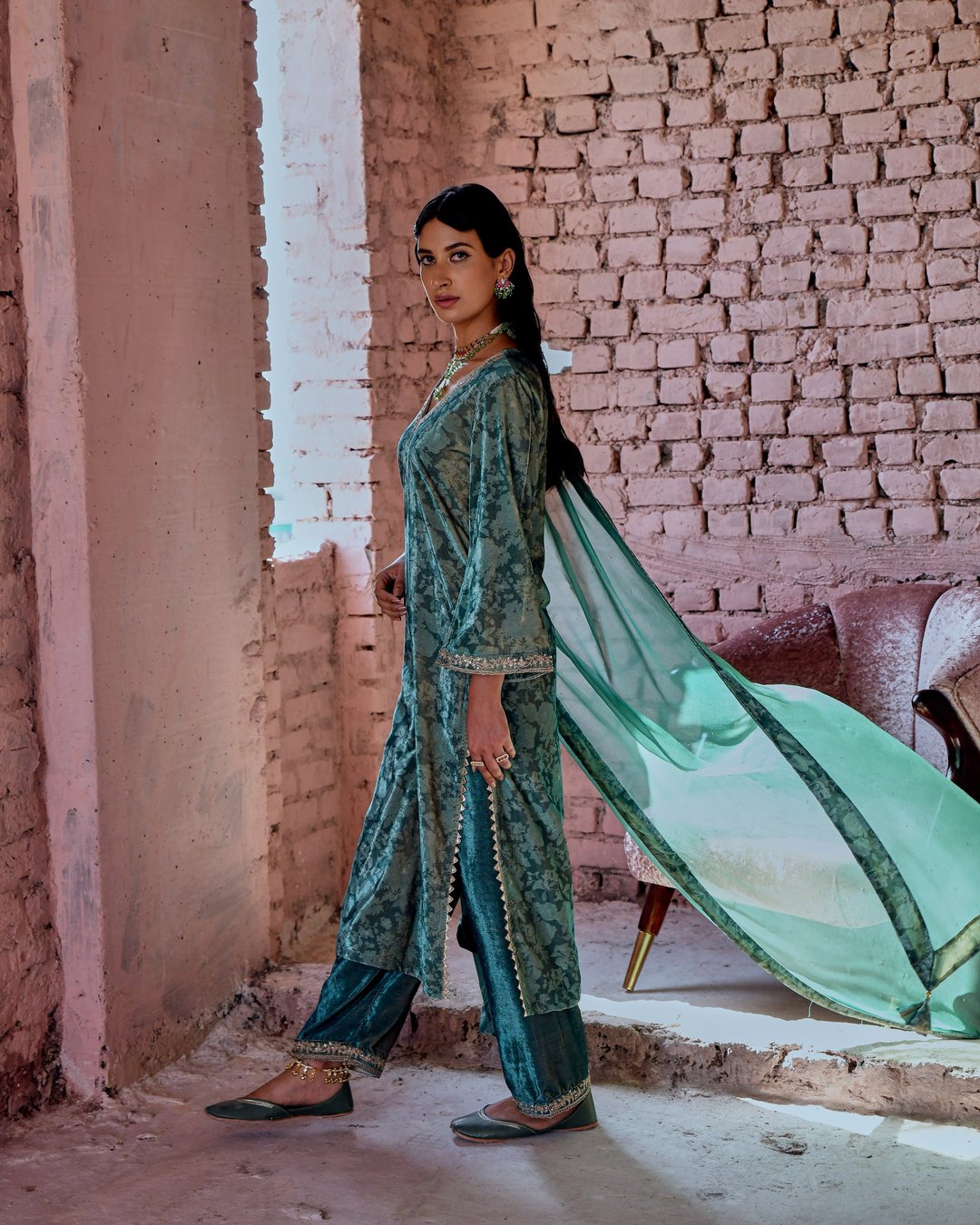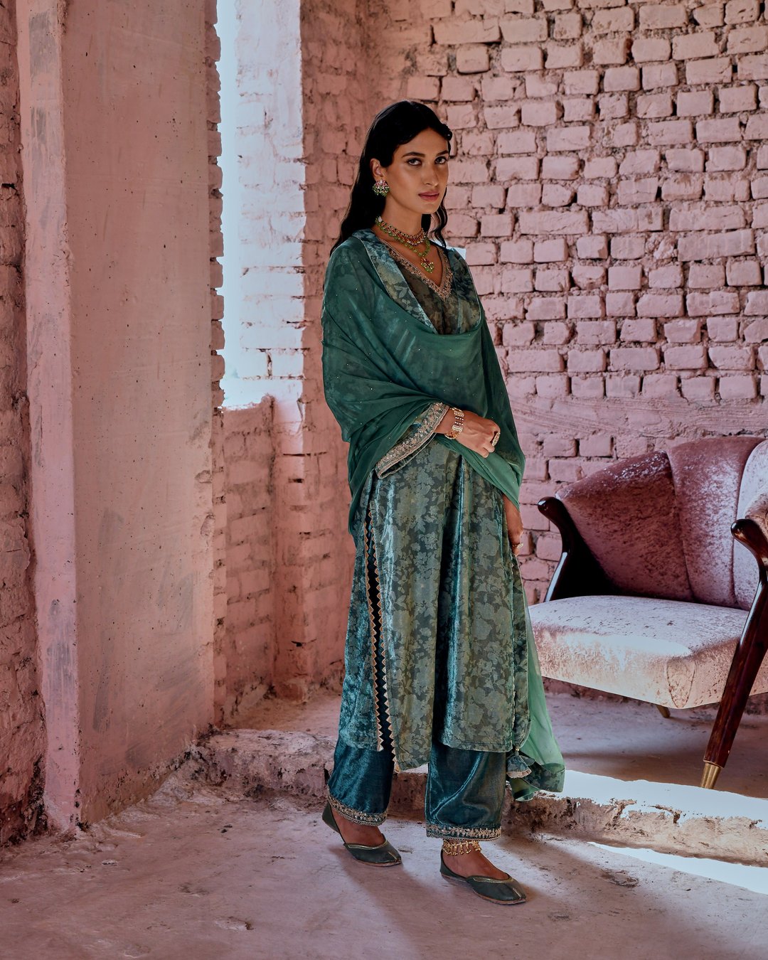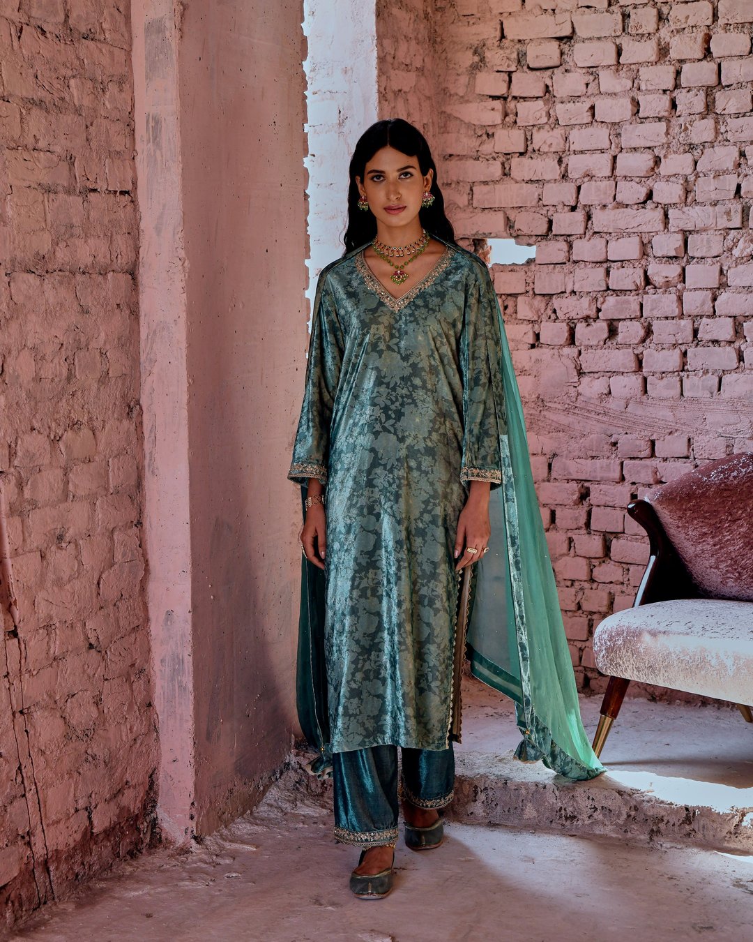 Castleton Green Classic Straight Makhmal Kurta Set