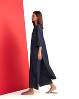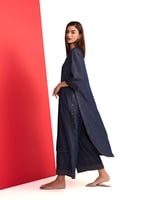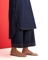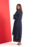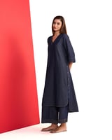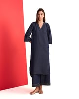 Denim Blue V-Neck Straight Kurta and Pant Set