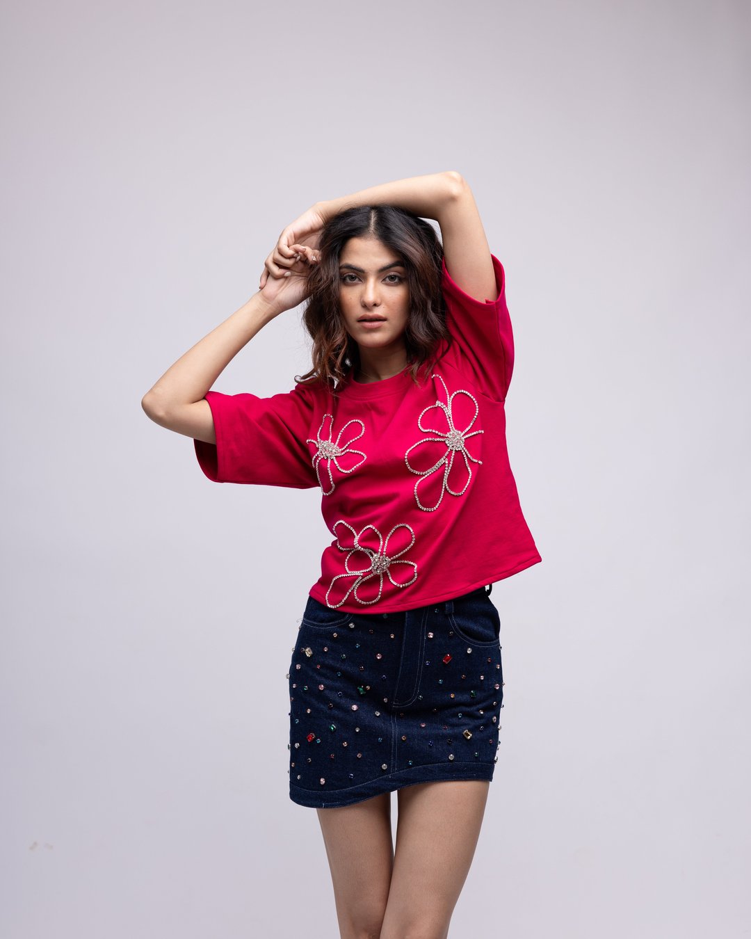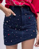 Asymmetric Denim Mini Skirt With Multi-Colour Embellishment