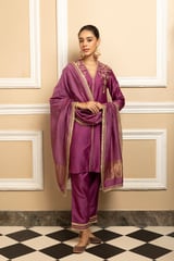 Zahra Silk Chanderi Handcrafted Kurta Set