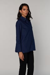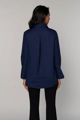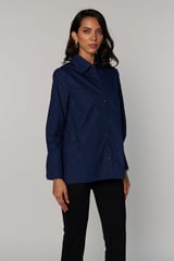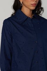 Navy Blue Stud-Embellished Longline Shirt