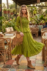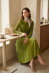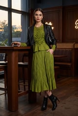 Lime Green Textured Top and Pleated Midi Skirt Co-ord Set