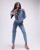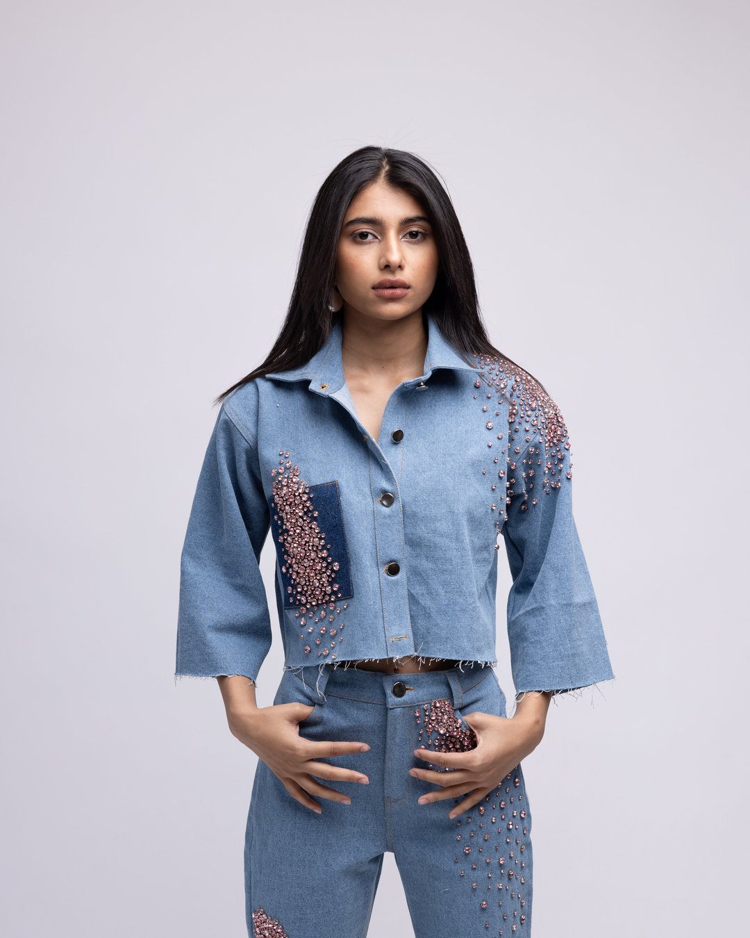 Cropped Denim Shirt With Multi-Colour Embellishments