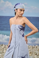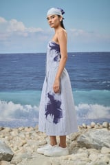 Strapless Midi Dress in Premium Cotton Pinstripe