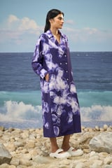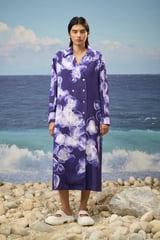 Relaxed Shirt Dress Cotton Poplin Abstract Print