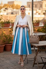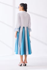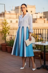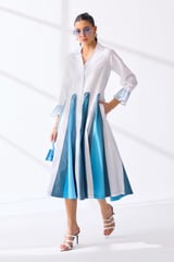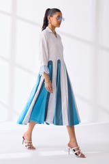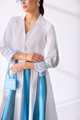 White Colorblock Fit and Flare Midi Shirt Dress