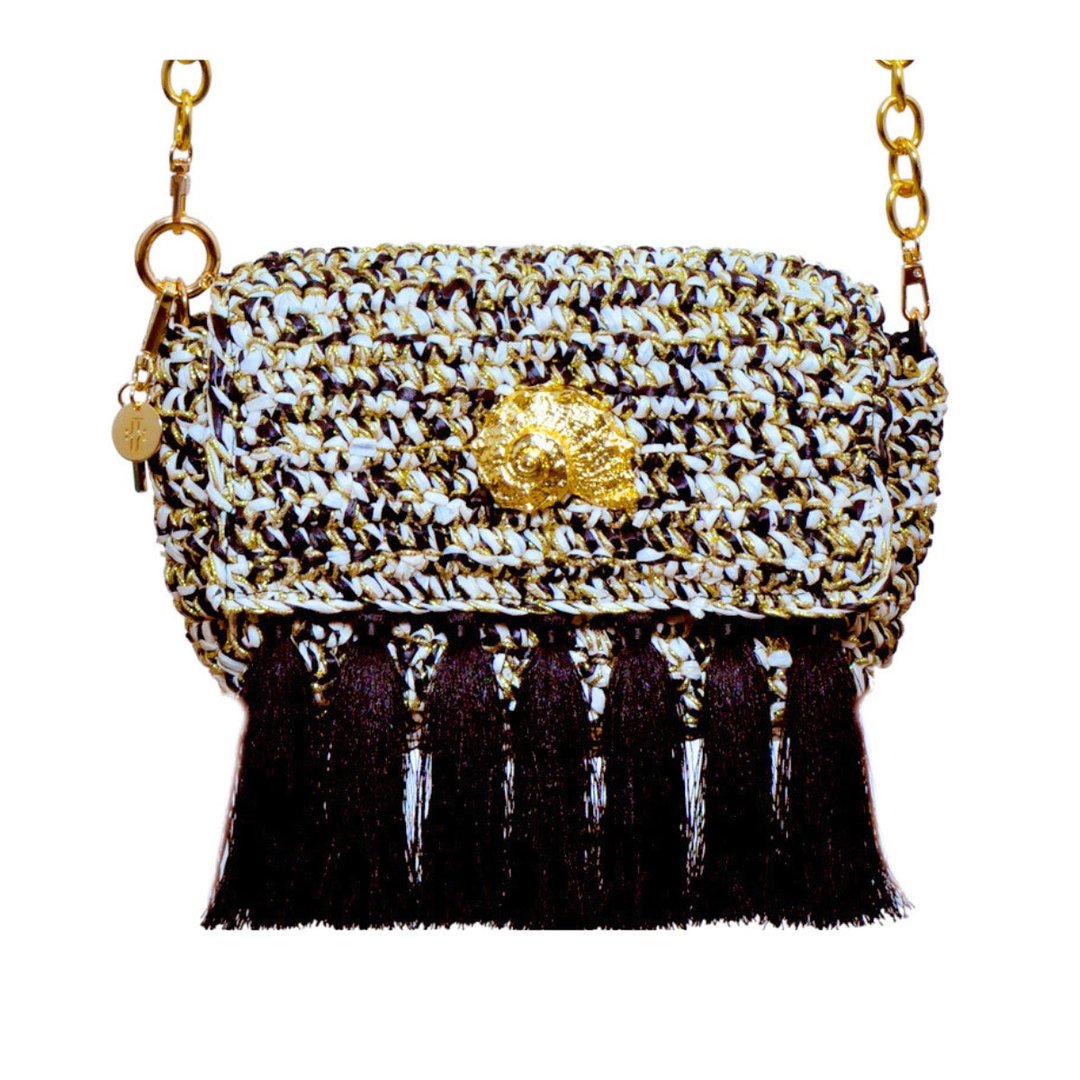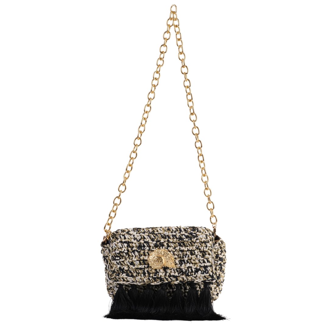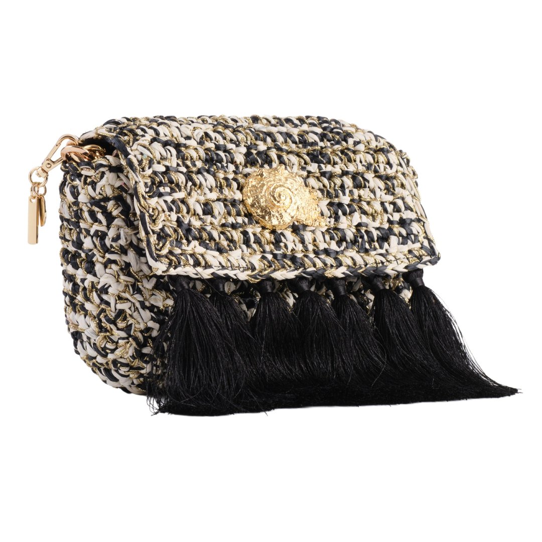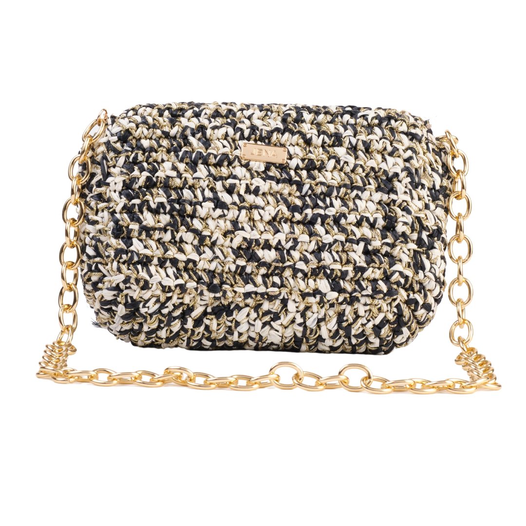Jena 3 Weave Black & Gold Raffia Crossbody