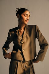Crop Blazer | Sand Brown