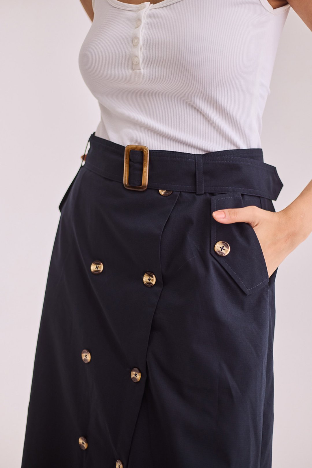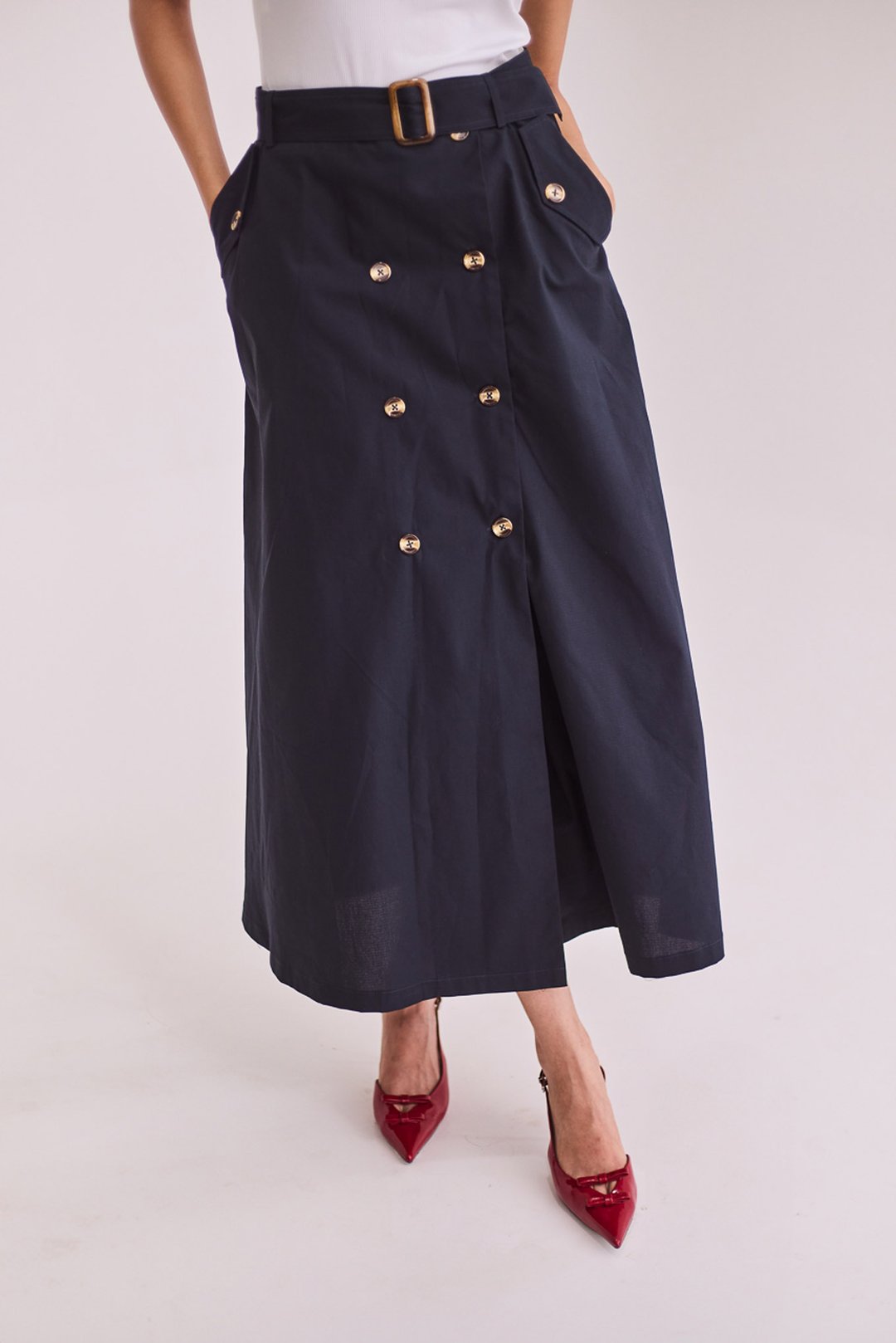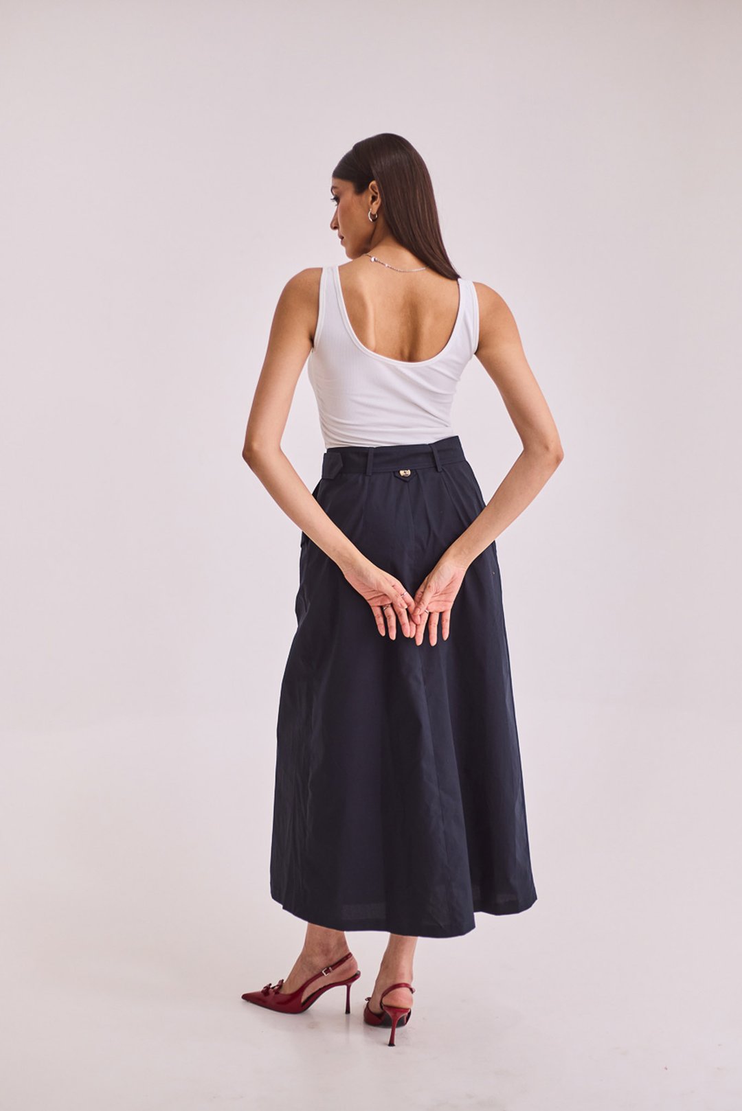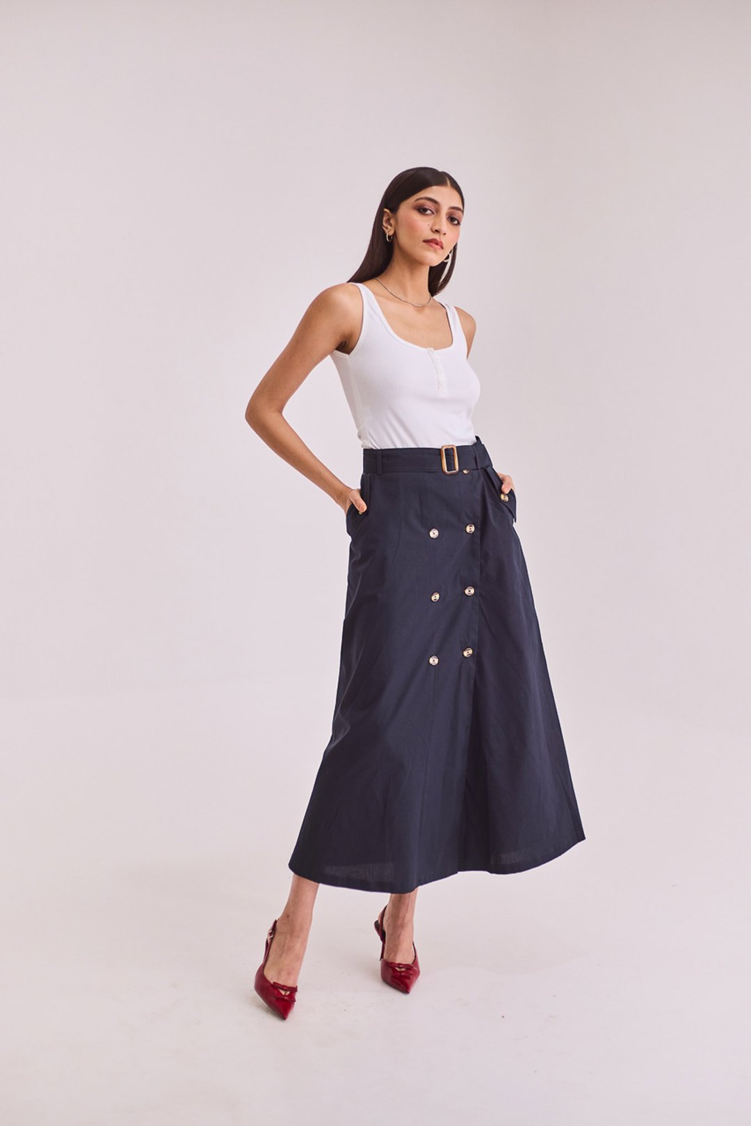 Navy Blue A-Line Midi Skirt