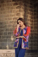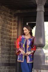Mirror Beaded Co-Ord Set Blue Red