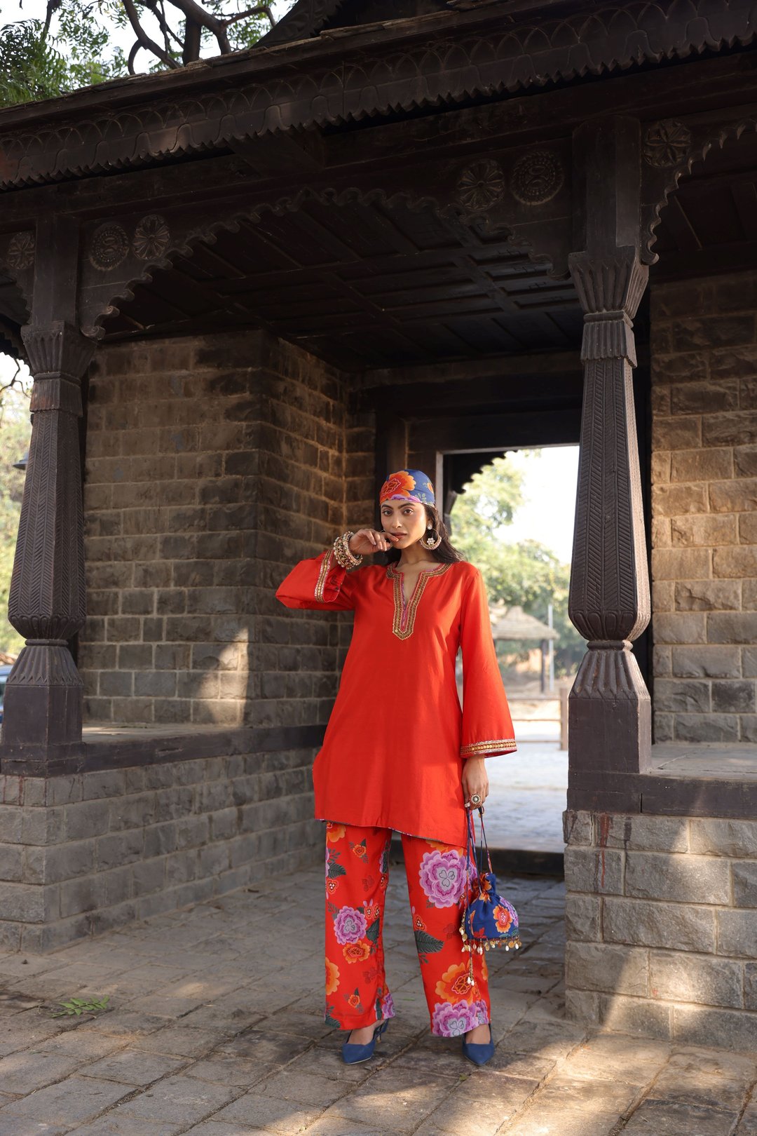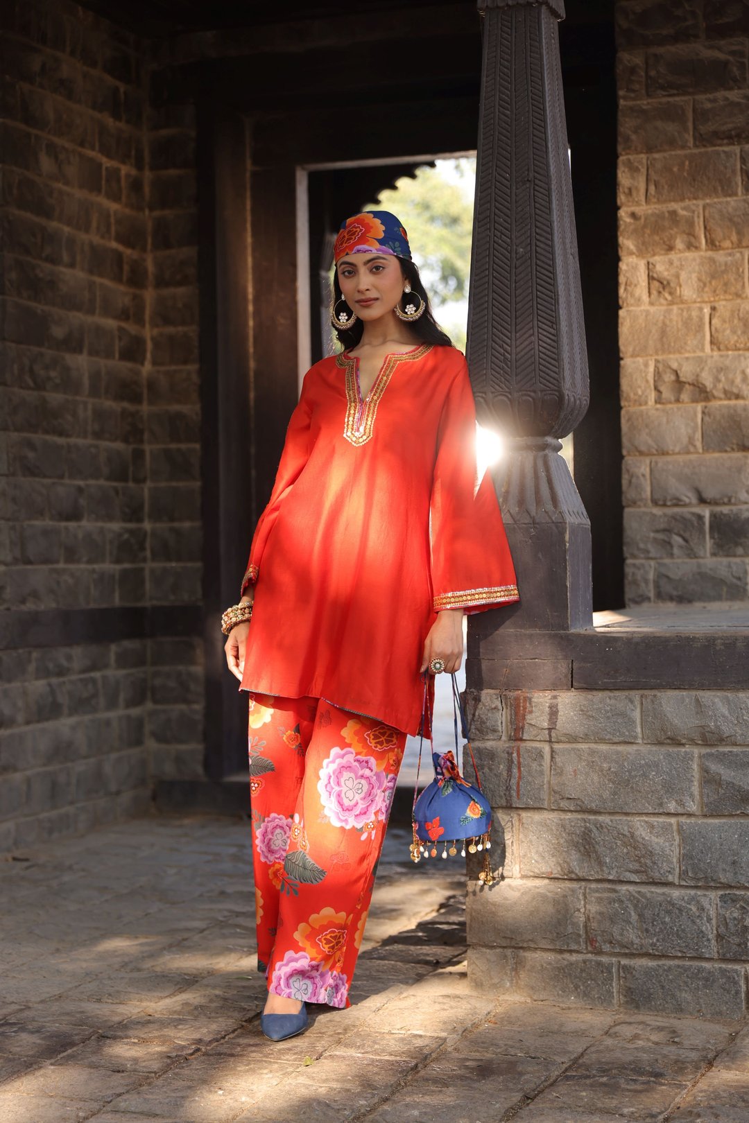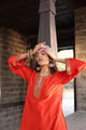 Orange Chanderi Printed Co-Ord Set