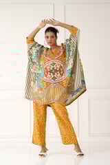 Yellow Printed Kaftan and Pants Co-ord Set