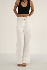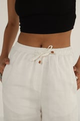 100% Linen Drawstring Straight Pants