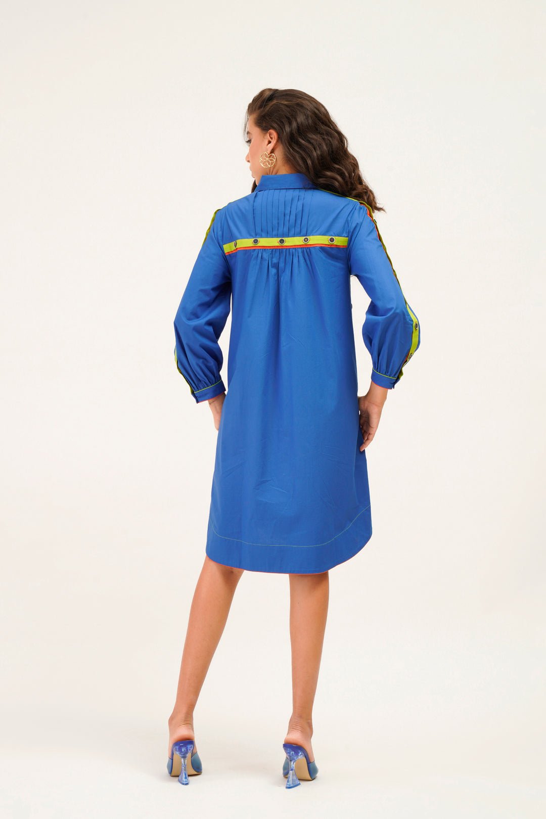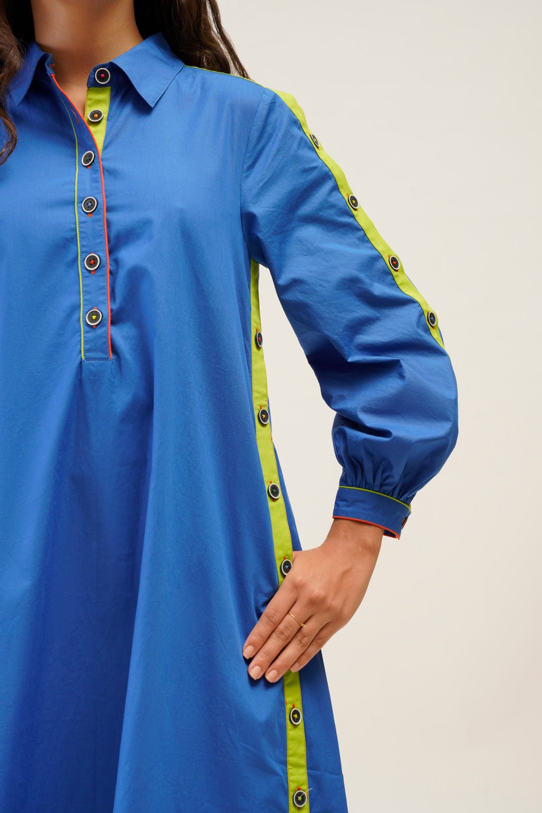 Alicia a Line Dress with Button Detailing on Sleeves