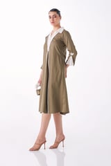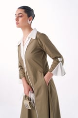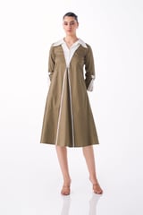 Mushroom Cotton Poplin Collared A-Line Midi Dress