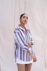 Multicolour Striped Shirt with Back Embroidery