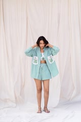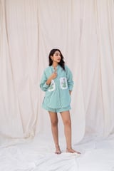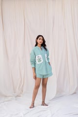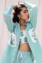 Green Striped Hand Embroidered Shirt